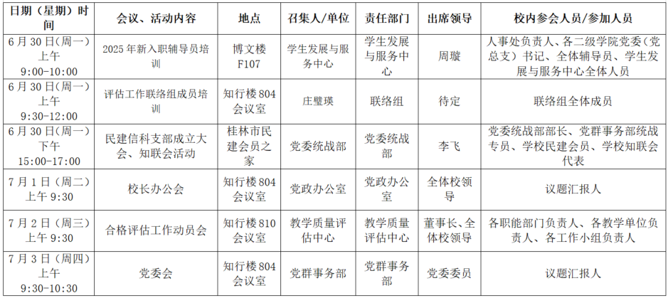 2025年春季学期第二十周全校性会议活动安排表