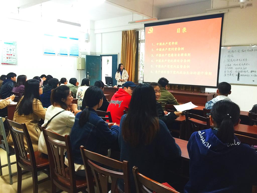 会上,闫昌凤老师带领各位学生党员学习了《中国共产党章程》、《中国共产党廉洁自律准则》等,同时讲述了近年来具有警示作用的典型案例,提醒广大党员同志时刻注意自身修养,要严守纪律、不忘初心,牢记青春使命,不断提升政治站位和政治觉悟。