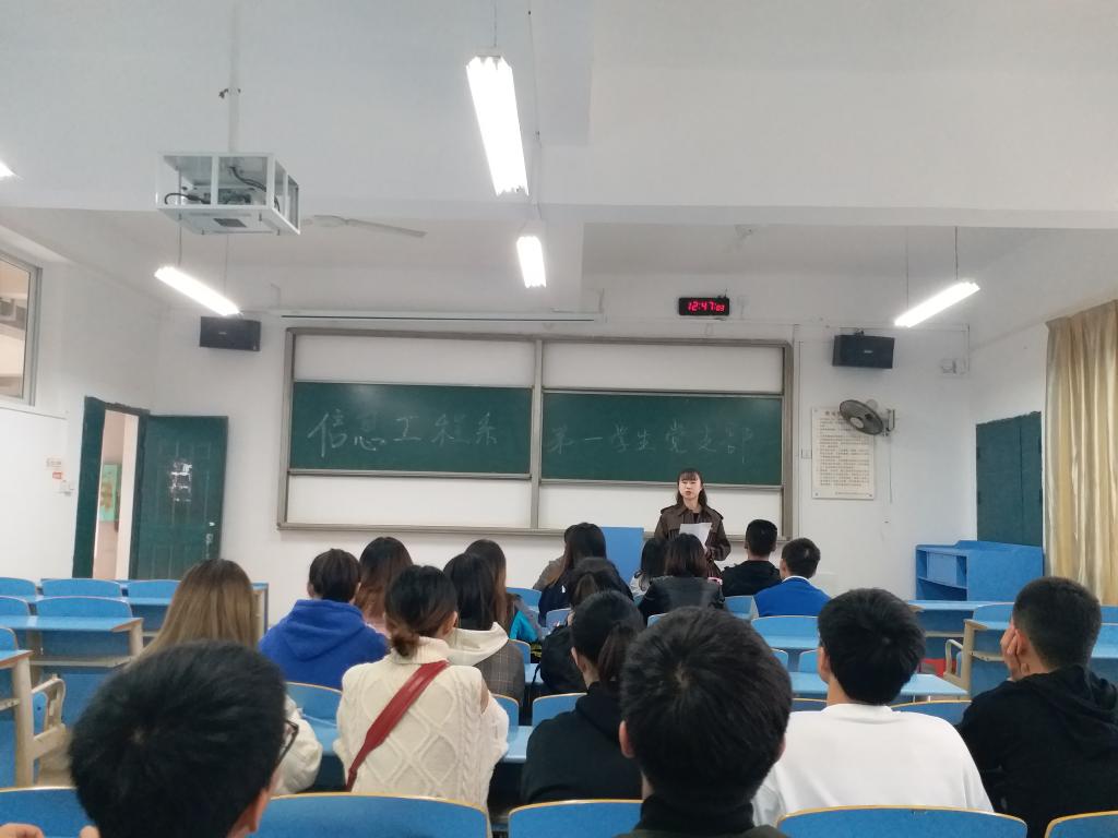 为贯彻落实“不忘初心、牢记使命”主题教育工作,10月25日,信息工程系学生第一、二党支部分别在21104、21106教室召开主题教育软弱涣散整顿工作会议,全体党员参加。