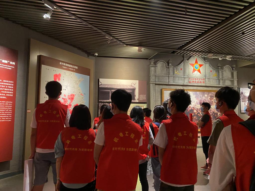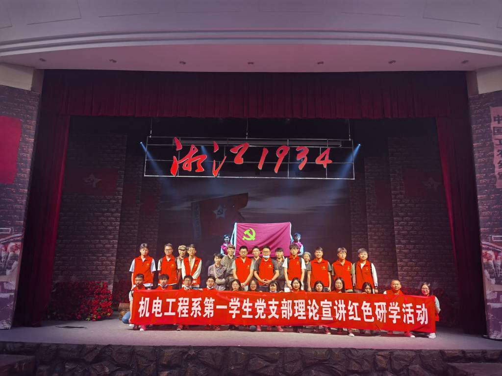 参观兴安红军长征突破湘江烈士纪念馆时,师生党员认真听取了现场讲解,观看了真人话剧《湘江1934》,重温了入党誓词。同时,为深入到广大学生当中开展党史宣讲活动,深化红色文化育人实效,学院大学生理论宣讲队伍与机电工程系第一学生党支部通过面对面交流,组建院系两级大学生“学史达人”理论宣讲队伍。