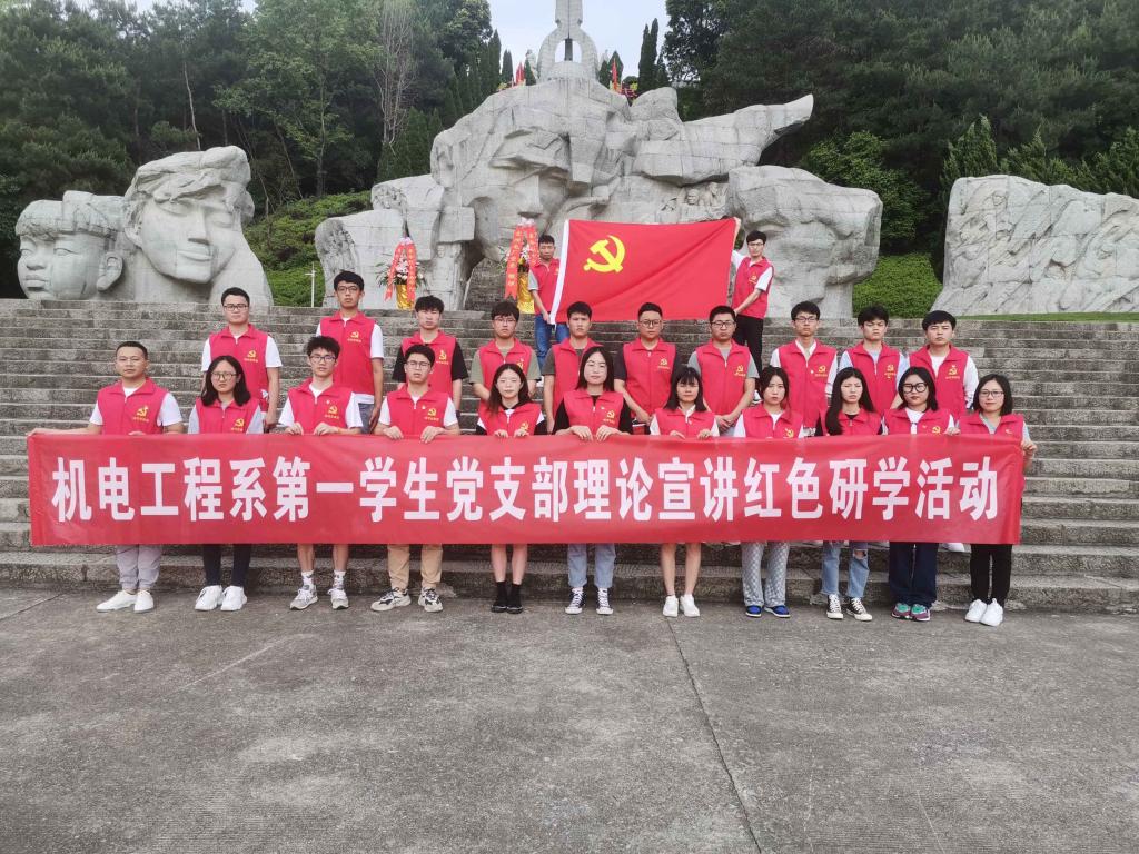 为扎实开展党史学习教育,弘扬红色文化,传承红色基因,引导学生党员坚定理想信念,5月8日下午,由党群事务部蒋春妹老师和机电工程系第一学生党支部严继玲老师带队,学院大学生理论宣讲团成员携手机电工程系第一学生党支部30余名学生党员代表赴兴安红军长征突破湘江烈士纪念碑园开展红色研学活动。