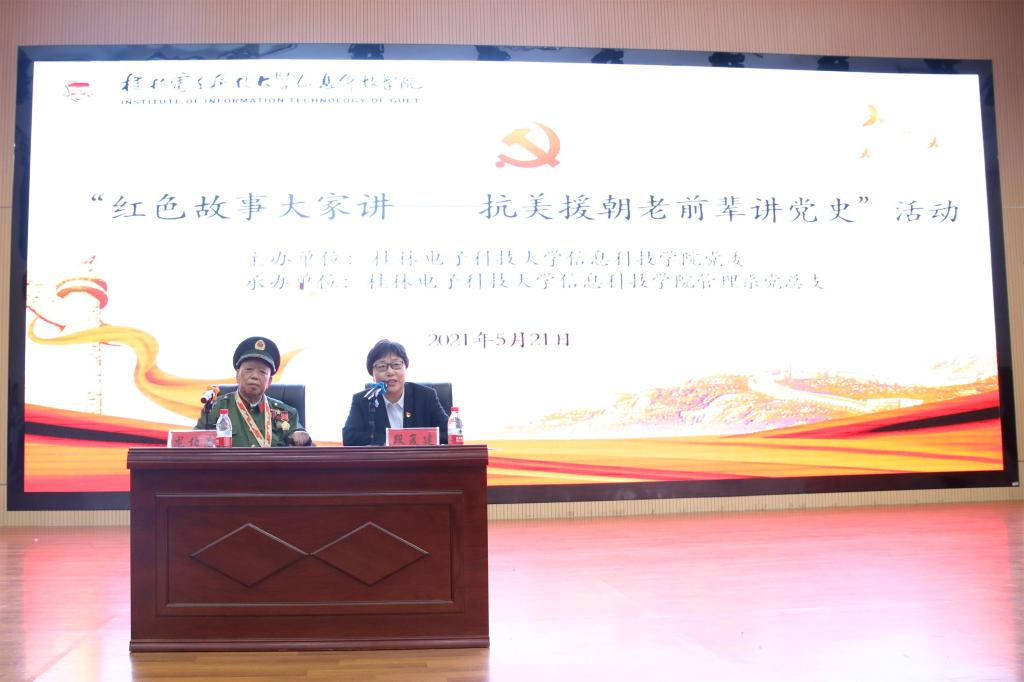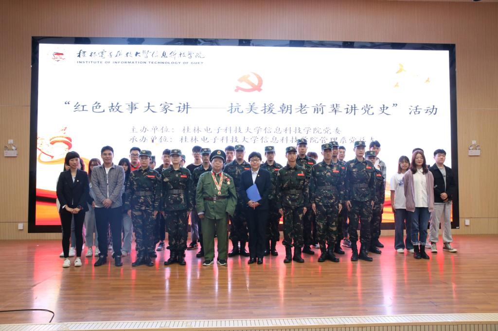为深入推进学院“感党恩 跟党走”主题系列活动,5月21上午,由学院党委主办、管理系党总支承办的“红色故事进校园”活动在学院51206报告厅举行。活动邀请了曾参加过越南、朝鲜战争的退役老兵、现桂林电子科技大学离退处老同志龙伯志老师为大家授课。活动由学院院长段复建主持,各有关部门负责人、各系党总支书记以及近200名学生党员参加活动。