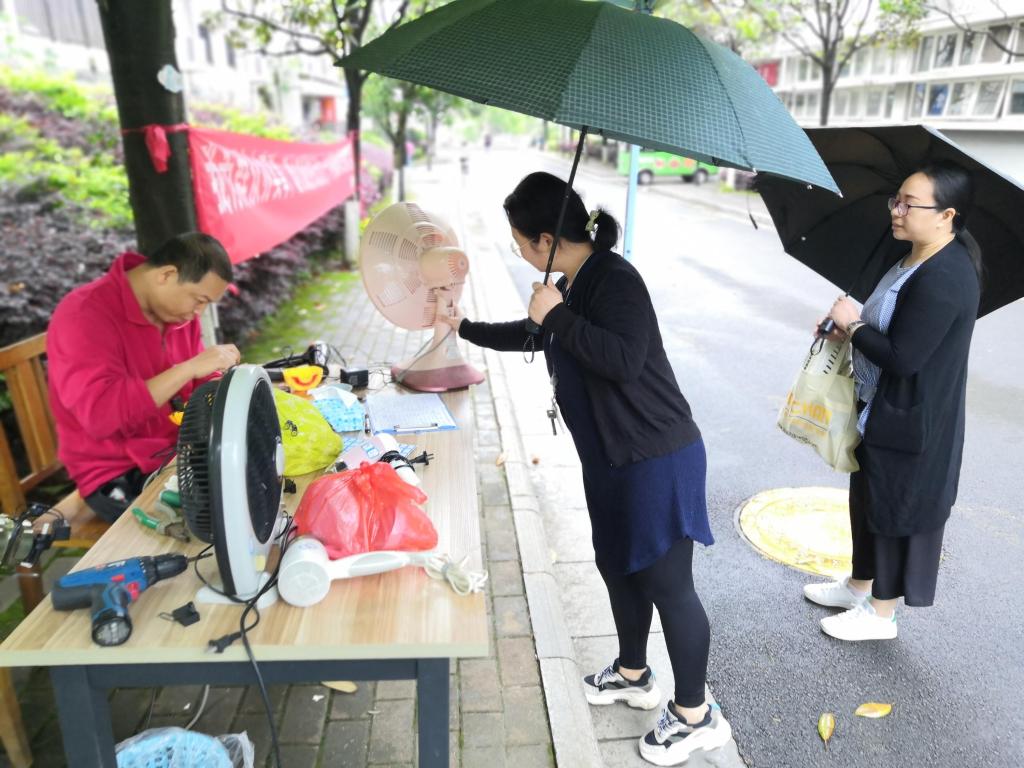 “外面下着暴雨,看到师傅们还在热情的为我们义务维修,觉得很暖心很感激。平时我们东西坏了拿去外面维修不仅费时费力还很麻烦,特别感谢学校开展此次活动,为我们提供了很大的便利”。一位学生对此次活动赞不绝口。