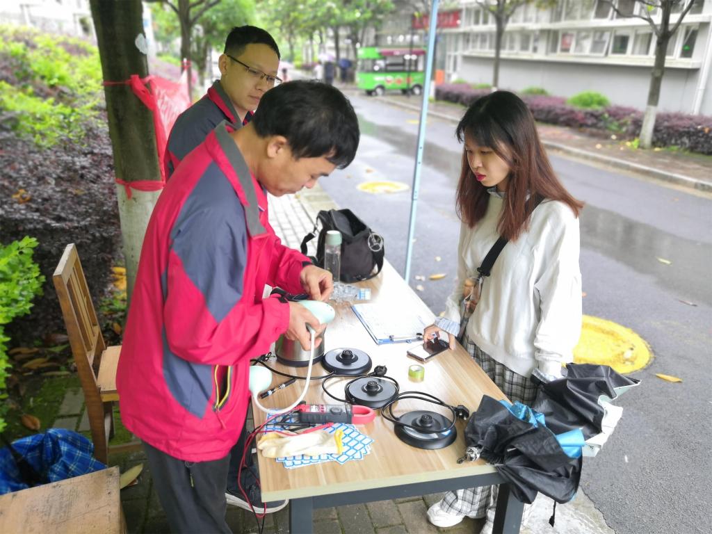 该活动为期一周,恰逢桂林雨季,师傅们每日都在活动现场热情接待师生,对送来的“病号”认真做“体检”,规范的进行登记、编号、分类,分析问题、“对症下药”进行修理。此外,维修师傅对无法修好的电器会认真地向师生说明损坏原因,并耐心向师生提供维修建议及讲解家电使用与保养的方法。在师傅们的妙手下,一件件家电“重获新生”。据统计,此次活动共维修电饭锅、电池炉、豆浆机、风扇、热水壶、吹风机、台灯等小家用电器153件,修复140件,修复率高达90%,广受师生赞誉。
