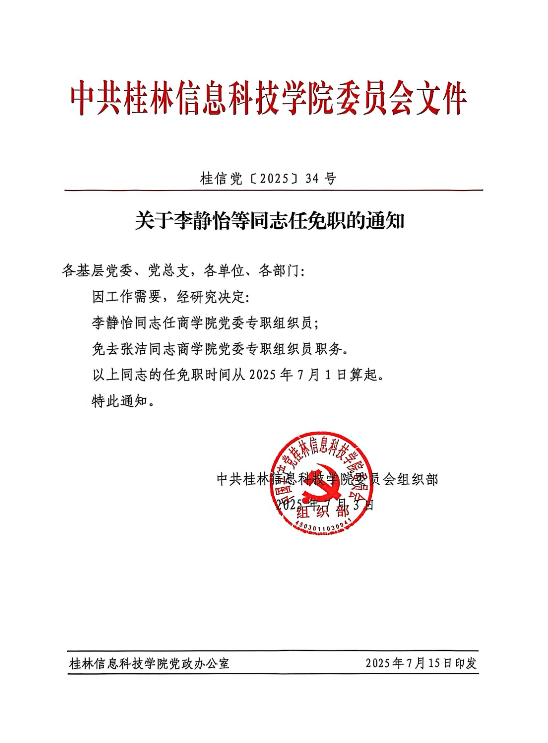 关于李静怡等同志任免职的通知