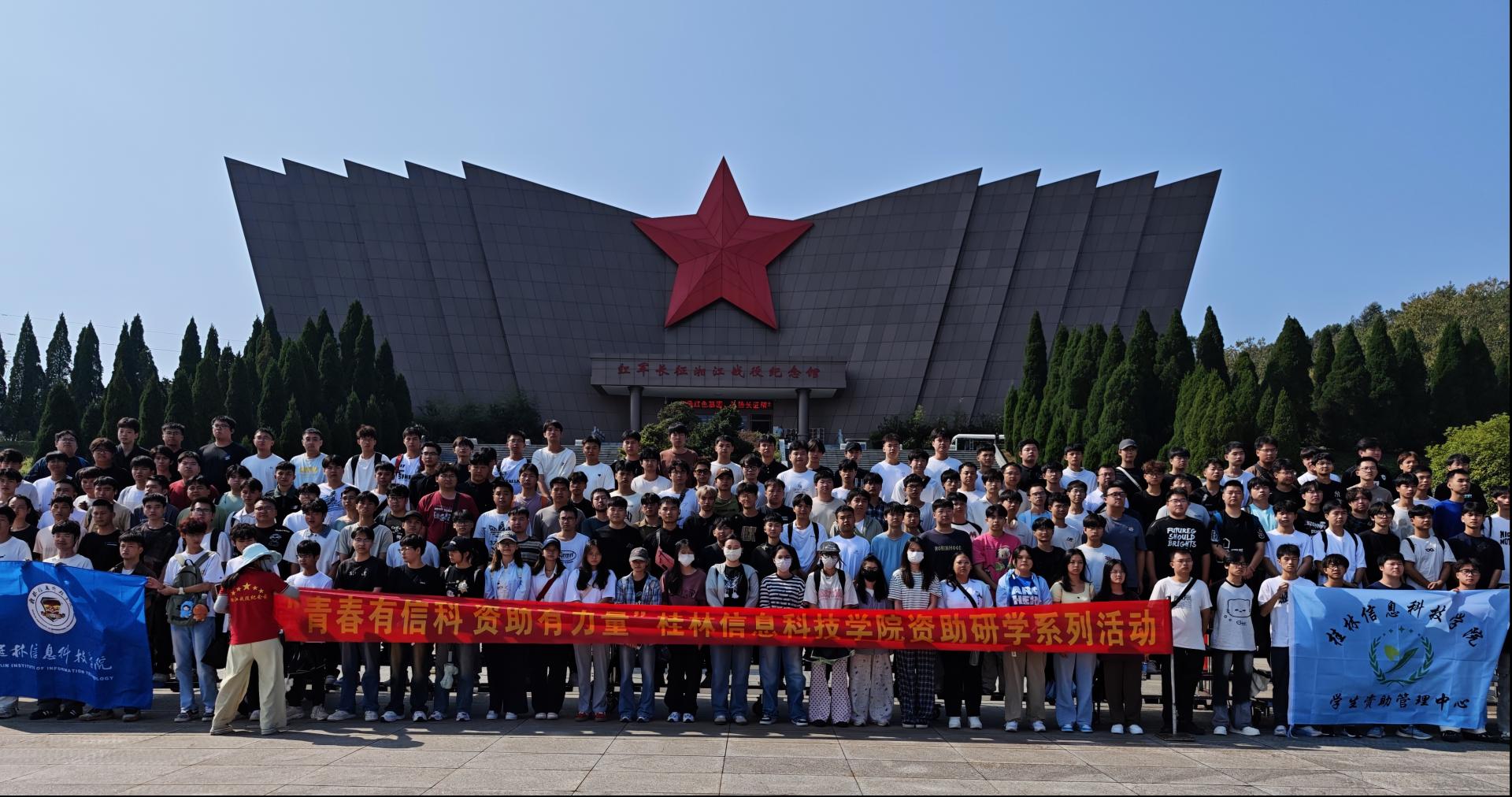 为厚植学生家国情怀,推动资助育人与红色教育同频共振,10月12日,桂林信息科技学院开展 “青春有信科 资助有力量” 资助研学系列活动,组织学生走进红军长征湘江战役纪念馆与毛竹山,在红色地标中追寻革命足迹、感悟信仰力量,让资助政策的温暖与革命精神的感召深度融合。