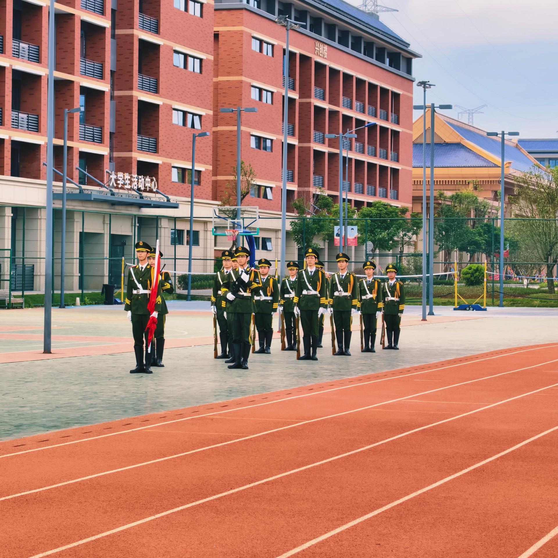 为深化爱国主义教育,弘扬爱国主义精神,桂林信息科技学院于2025年9月15日早上7:40在我校田径场举行升国旗仪式。学校纪委书记、校长助理周璇、各二级学院党委副书记、党委学生工作部工作人员、全体新生辅导员及4000余名新生共同参与,以庄严仪式厚植家国情怀,凝聚奋进力量。
