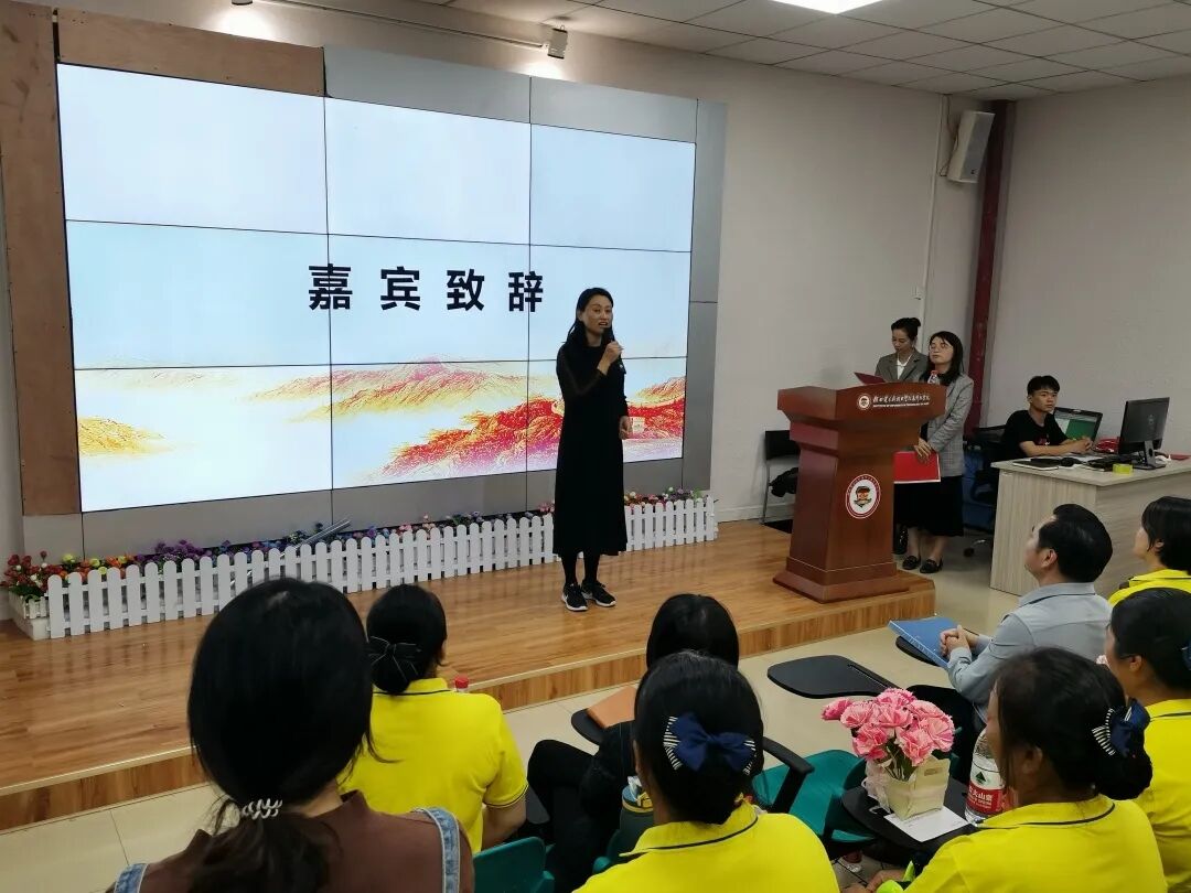主题活动中,首先以观看视频的形式让全体同学了解到学院负责一线清扫的叔叔阿姨日常工作的不容易,同时同学们通过演唱《感恩的心》、赠送手工制作的节日卡片、手工花以及水杯的方式表达了对叔叔阿姨们的感谢与敬佩,并以集体宣誓的形式,对我们的同学们发起《争做爱护校园环境小先锋》的倡议,管理系所有的学生志愿者集体宣誓,大家都表示在以后的学习生活终将会秉持着爱护环境的原则为人处事,以身作则,用自己的力量感染周围所有的同学。最后,学院院长助理、物业公司总经理兼物业直属党支部书记宋海军老师发言,宋老师就目前学院对于垃圾分类工作所做的准备向大家进行了详细介绍,倡导大家加入到垃圾分类的队伍中来,并鼓励阿姨们继续做好“校园美容师”的工作。同时,学院财务总监朱霞老师对此次活动也进行了总结,朱霞老师对辛苦的环卫工人们进行了慰问,希望在校园美化工作中有更多的学生志愿者加入,相信在我们校园志愿者和“校园美容师”的共同努力下,我们的校园美化的工作将会继续开展的有声有色。