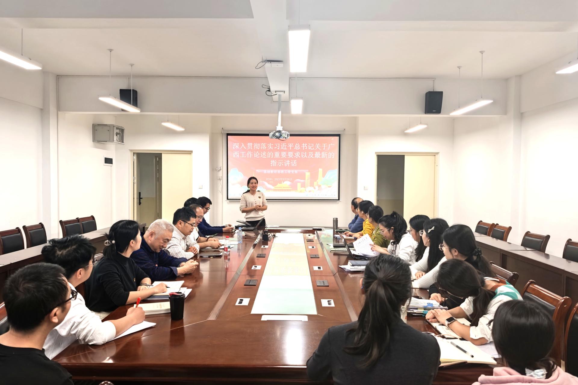 会上,刘映伶书记强调了本次学习的重大意义。她指出,习近平总书记对广西工作的重要论述,是引领广西发展的总纲领和行动指南。作为身处广西的高校教育工作者,我们必须深刻领会其核心要义和实践要求,将思想和行动统一到党中央的决策部署上来,找准自身在建设新时代中国特色社会主义壮美广西宏伟事业中的定位和责任。