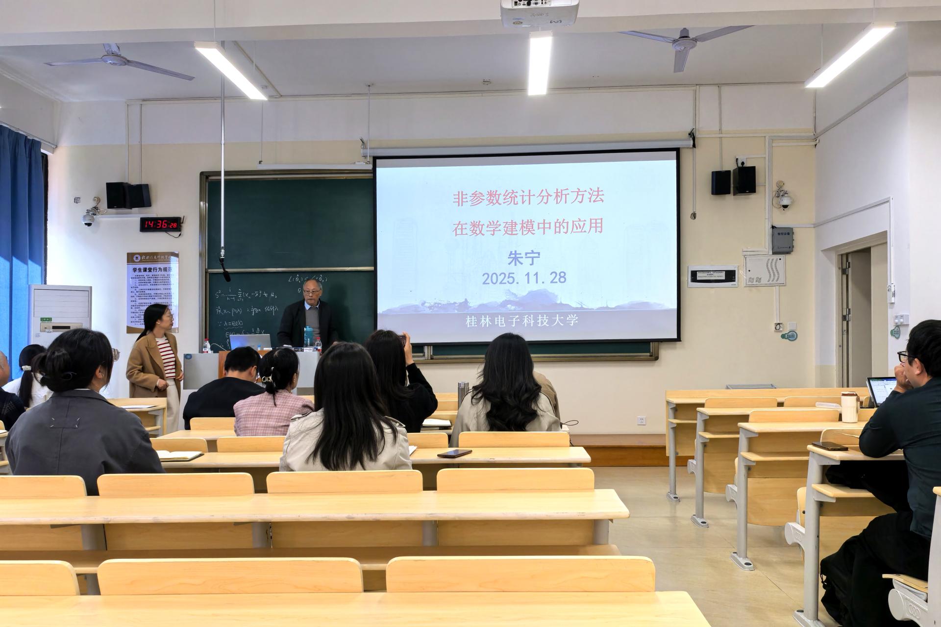 11月28日下午,桂林电子科技大学朱宁教授应我校基础教研部邀请,在敏思楼D206教室作《参数估计的深层理解与教学实践》的专题讲座。本次报告由基础教研部主任谢永安主持,基础教研部全体教师参加。