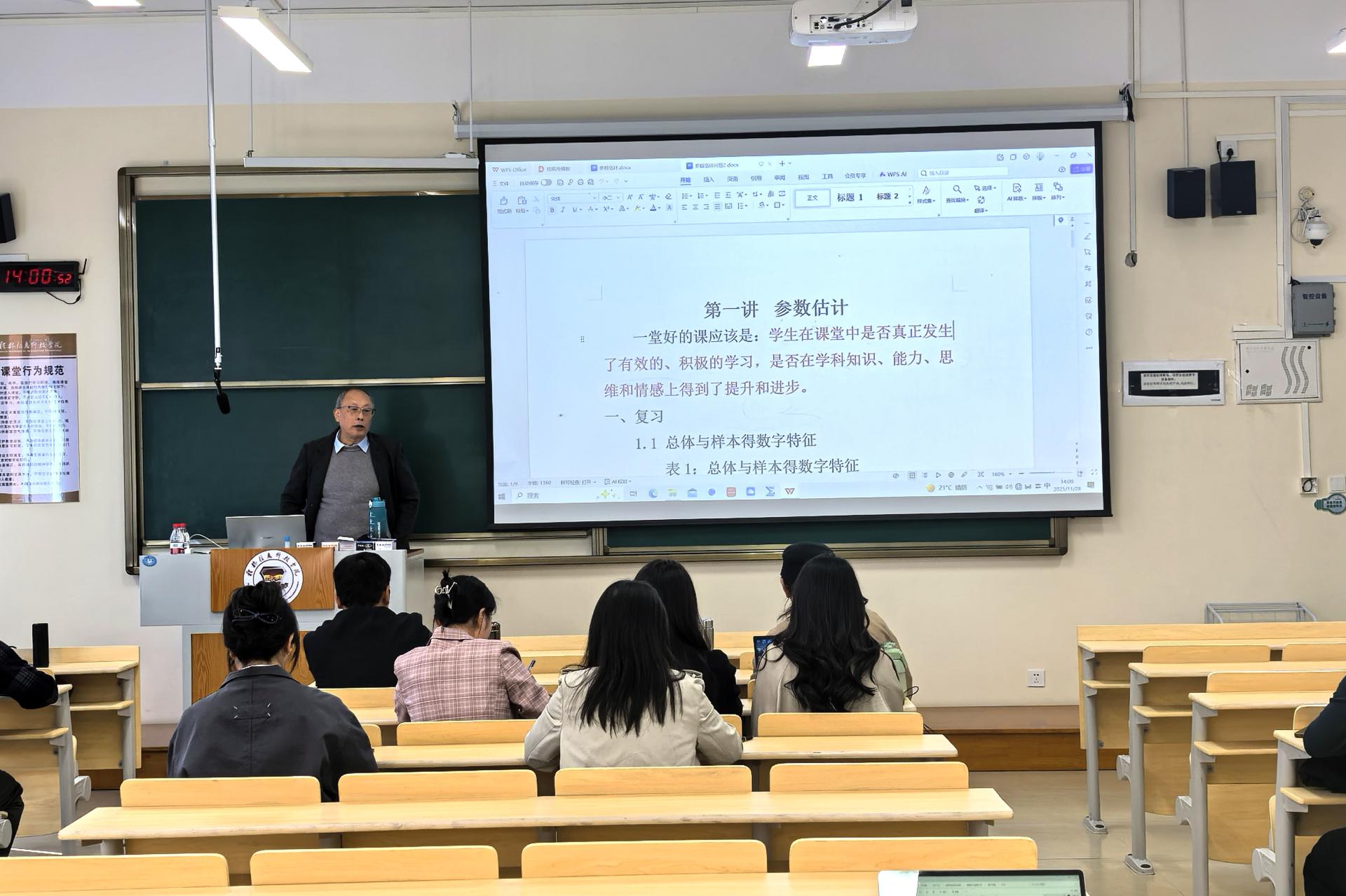 报告中,朱宁教授以“如何上好一节课”为主题,以《概率论与数理统计》课程中的“参数估计”相关知识教学为案例,详细阐述数学统计学相关课程的教学方法。他重点强调了教学质量的好坏在于学生是否有效、积极地参与课堂,以及是否在知识、能力、思维和情感等方面得到提升和进步。朱宁教授分享了复习衔接内容、课堂提问、核心知识讲解、例题讲解消化知识等重要的教学环节,指出要根据学生真实的素质水平,做好针对性的讲解,将难点知识讲通,将重点知识讲透,给学生学到知识的成就感。在案例报告之后,朱宁教授作进一步延伸,分享了《非参数统计分析方法在数学建模中的应用》,通过多个建模获奖的实例拓宽教师们的视野,增强教师们的实践能力和创新能力。