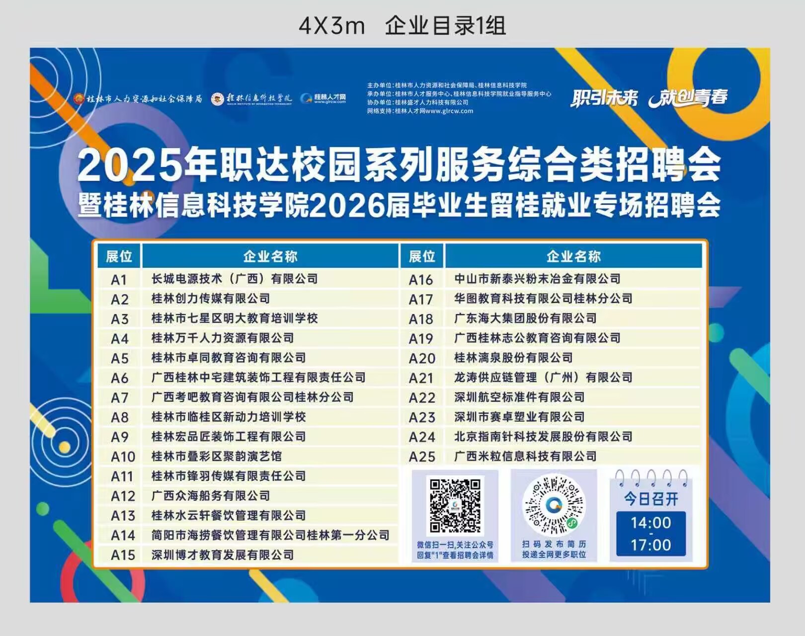 为搭建毕业生与用人单位之间的高效供需平台,我校定于2025年11月28日举办2026届毕业生留桂就业专场校园招聘会。现将有关事项通知如下: