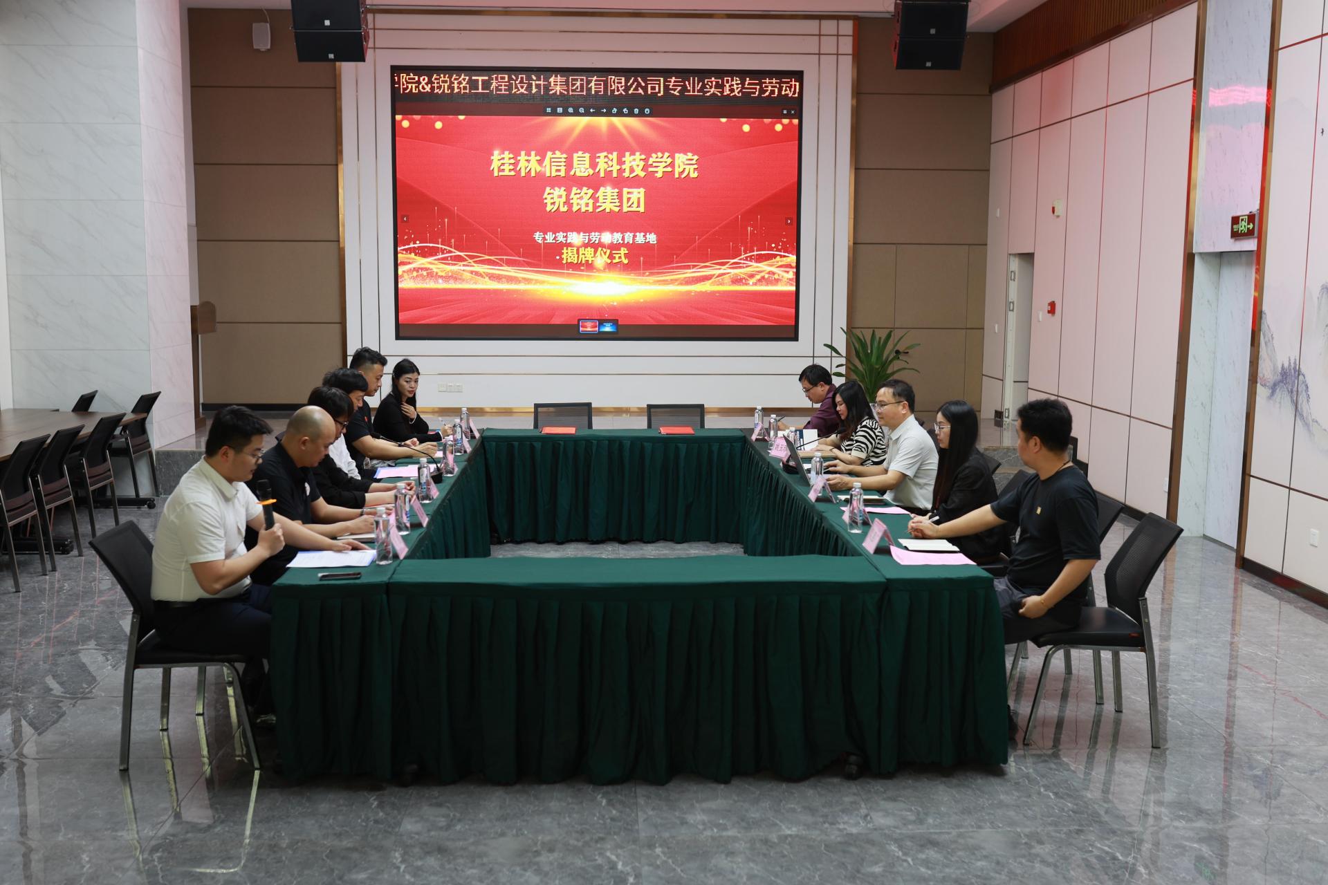 为深入贯彻落实国家关于深化产教融合的决策部署,3月27日,桂林信息科技学院与锐铭工程设计集团有限公司在临桂区金贸中心举行专业实践与劳动教育基地签约揭牌仪式。学校校长解庆林与创意设计学院相关负责人前往锐铭集团,就围绕人才培养、技术创新等领域展开深度合作,共同探索“产学研用”一体化育人模式。