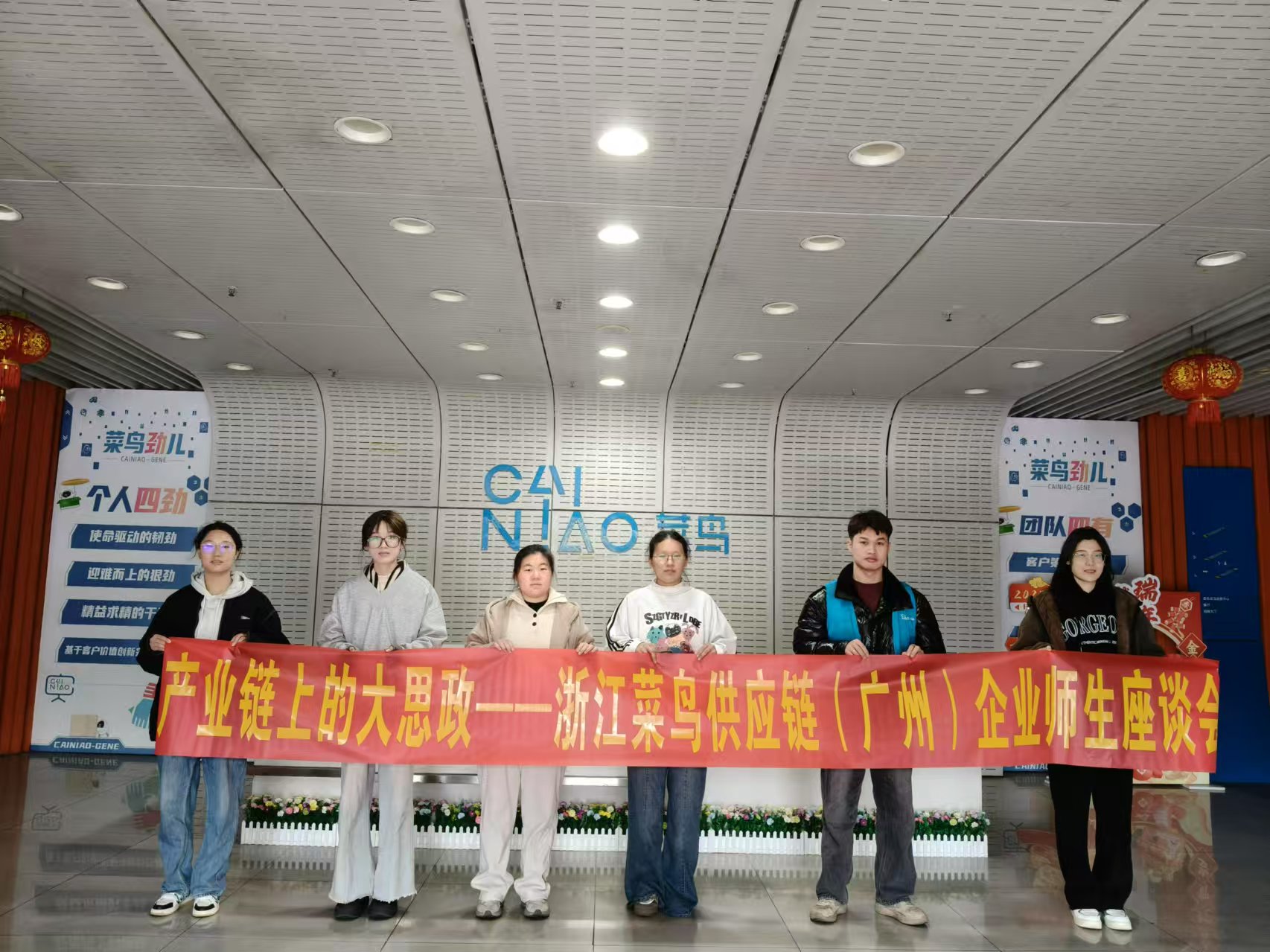 在浙江菜鸟供应链有限公司(广州分仓),罗燕玲和周小力两位教师深入了解学生实习情况,通过谈心交流耐心解答学生困惑,鼓励他们在岗位上发扬“咬定青山不放松”的奋斗精神。随后,教师们结合全国两会精神,以产业发展为切入点,为学生带来一堂生动的产业链上思政课。通过分析行业趋势与就业形势,引导学生将个人发展融入国家经济建设,从社会责任、职业道德等维度,启发学生思考职业价值,帮助其树立正确的世界观、人生观和价值观。