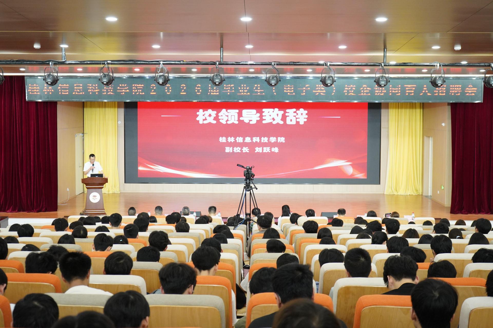 5月17日, 我校成功举办2026届(电子类)毕业生校企协同育人专场招聘会。本次活动由电子工程学院承办,学校副校长刘跃峰、电子工程学院及校企合作处负责人出席活动。