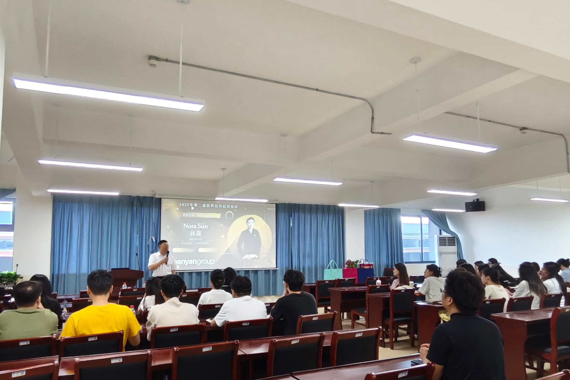 当日上午,孙茜女士以“悦榕集团领导力哲学与能力培养”为主题,为在场学生带来了一场3小时的讲座,她创新性地采用“根——干——叶——果”的比喻,深入剖析了领导力的四维模型。“根”象征着领导者的价值观与道德准则,这是领导力的根基所在,如同树木的根系,为领导力的成长提供稳固支撑和源源不断的养分;“干”代表着领导者的核心能力,涵盖决策、沟通、团队协作等多方面能力,是领导者在复杂环境中稳健前行的关键;“叶”寓意着领导者的创新与应变能力,如同树叶随风而动,不断适应外界变化,为组织带来新的活力;“果”则体现了领导力的最终成果,即通过有效领导实现组织目标,收获成功。