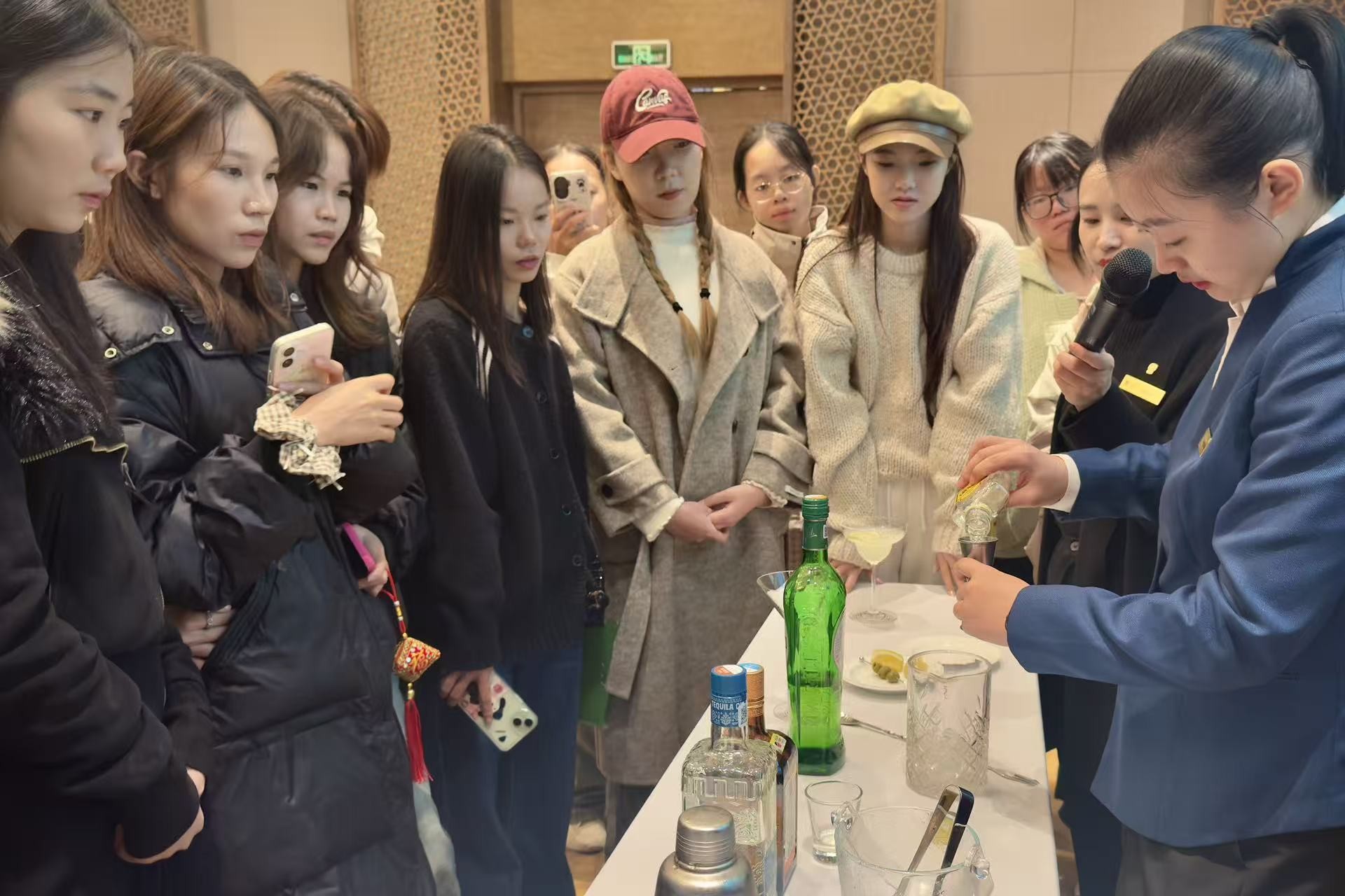 阳朔悦榕庄酒店以具有壮乡民俗风情的“抛绣球”仪式欢迎师生。我校2021级酒店管理专业校友、酒店人力资源部员工韦伟群带领新生参观漓江水岸别墅、湖心亭、悦榕阁等区域,讲解客房布置与服务标准;酒店学习与发展部经理黄丽芳开展专题讲座,介绍悦榕庄品牌发展历程、文化理念及组织管理体系,学生针对讲座和参观过程中的困惑进行积极思考和提问,黄经理进行逐一解答;随后由酒店餐饮部经理现场展示调酒技能,新生积极参与互动体验,进一步加深了学生对酒店实操技能的深刻认识。