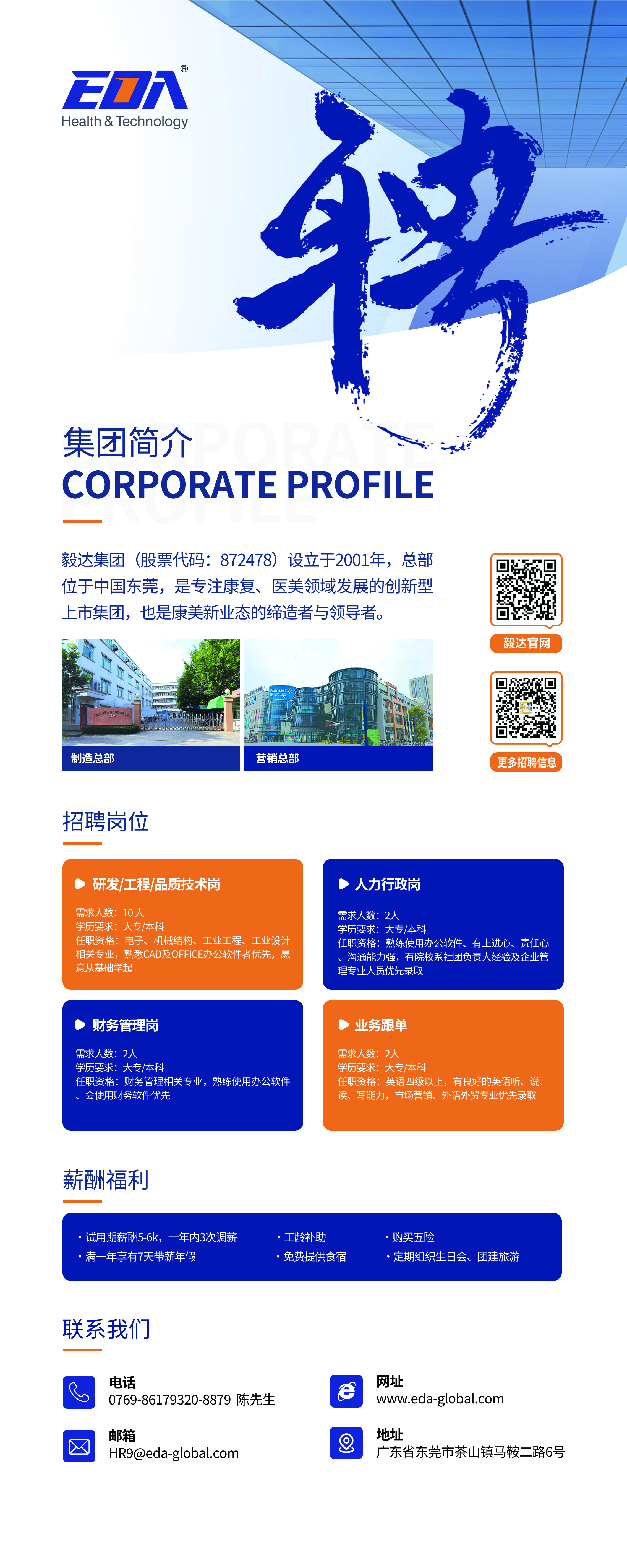 广东毅达医疗科技股份有限公司(以下简称”毅达科技”)成立于2001年,是专注于医疗健康,工业控制等定制化制造的集团企业,总部设在东莞,在北京、香港设有研发基地与营销中心。