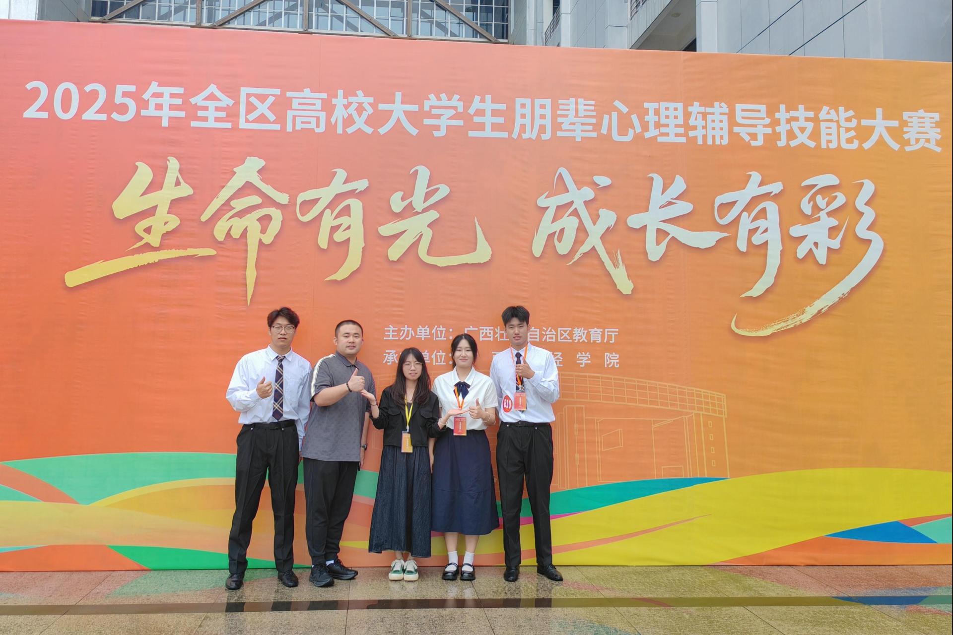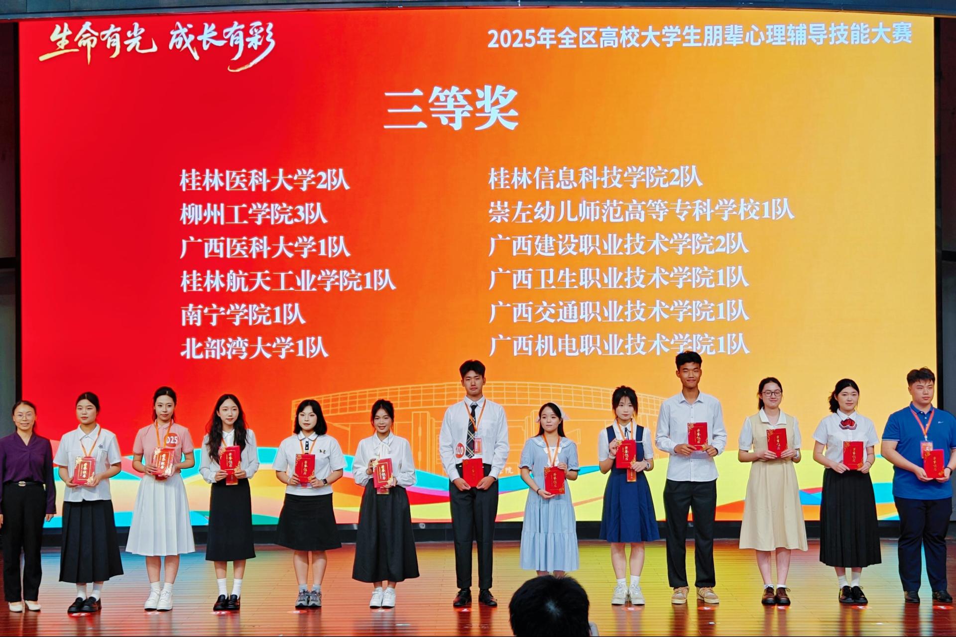 5月23日至24日,由广西壮族自治区教育厅主办的“2025年全区高校大学生朋辈心理辅导技能大赛”决赛在广西财经学院圆满落幕。桂林信息科技学院代表队凭借扎实的专业知识和出色的现场表现,荣获大赛三等奖,展现了学校心理健康教育的优秀成果。