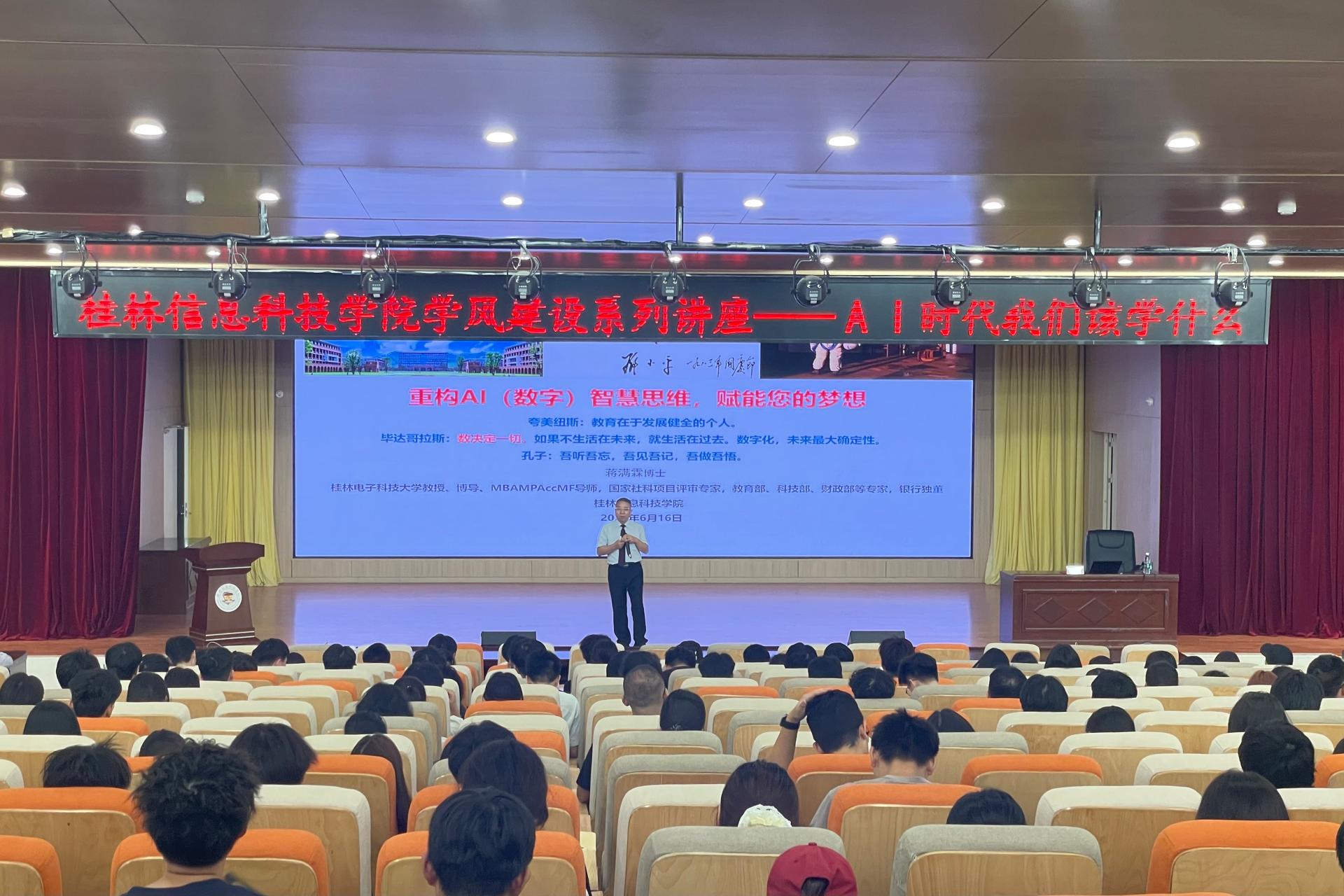 为深化学校学风建设内涵,提升学生数字化学习能力与职业竞争力,6月16日,我校学生发展与服务中心特邀桂林电子科技大学教学名师蒋满霖教授,在F107报告厅开展“AI时代我们该学什么”主题讲座。各学院负责老师、学生代表等360余人参与活动。