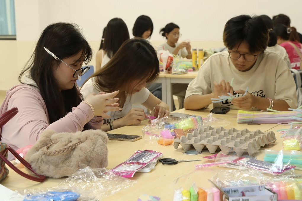活动期间,博文楼F201热闹非凡。在手工创作区,有同学用超轻黏土塑造出栩栩如生的小动物,有同学用扭扭棒编织成创意十足的挂饰。绘画创作区里,水彩画的斑斓色彩、马克笔绘画的鲜明风格,展现出同学们丰富的内心世界与艺术巧思。大家或专注雕琢作品,或与同伴交流创作灵感,现场氛围温馨且创意满满。参与的同学纷纷表示,在创作中不仅释放了压力,更对自身情绪与心理状态有了更清晰的认知。