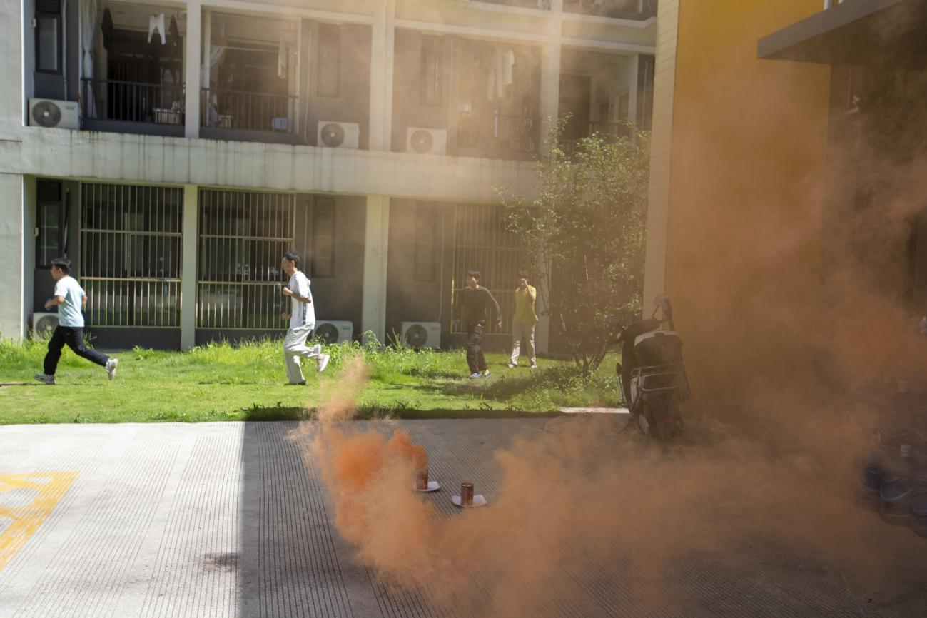演练开始前,各楼长和层长充分发挥学生社区网格化管理优势,提前对各楼层宿舍进行巡查,确保疏散通道畅通无阻。随着警报声响起,楼长和层长迅速行动,按照预案分工,引导同学们用湿毛巾捂住口鼻,弯腰低姿沿指定路线有序撤离至田径场集合。全程安全高效,展现了网格员队伍出色的组织协调能力。