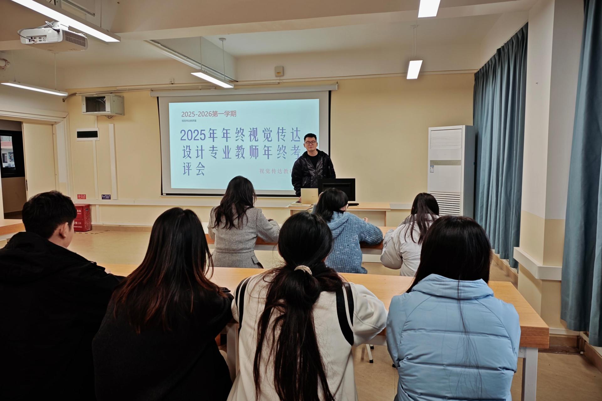 为全面总结本年度教学工作,推动专业建设持续高质量发展,12月22日,视觉传达设计教研室于守正楼G305召开了教师年终考评会。会议伊始,刘古月老师强调了年度考评工作对于促进教师专业反思、交流教学经验、明确未来方向的重要意义。随后,与会教师依次进行个人述职。大家围绕2025年度的教学工作、科研创作、学科竞赛指导以及个人专业发展等方面,通过详实的数据、丰富的案例展示,进行了系统汇报。在交流评议环节,教师们秉持客...