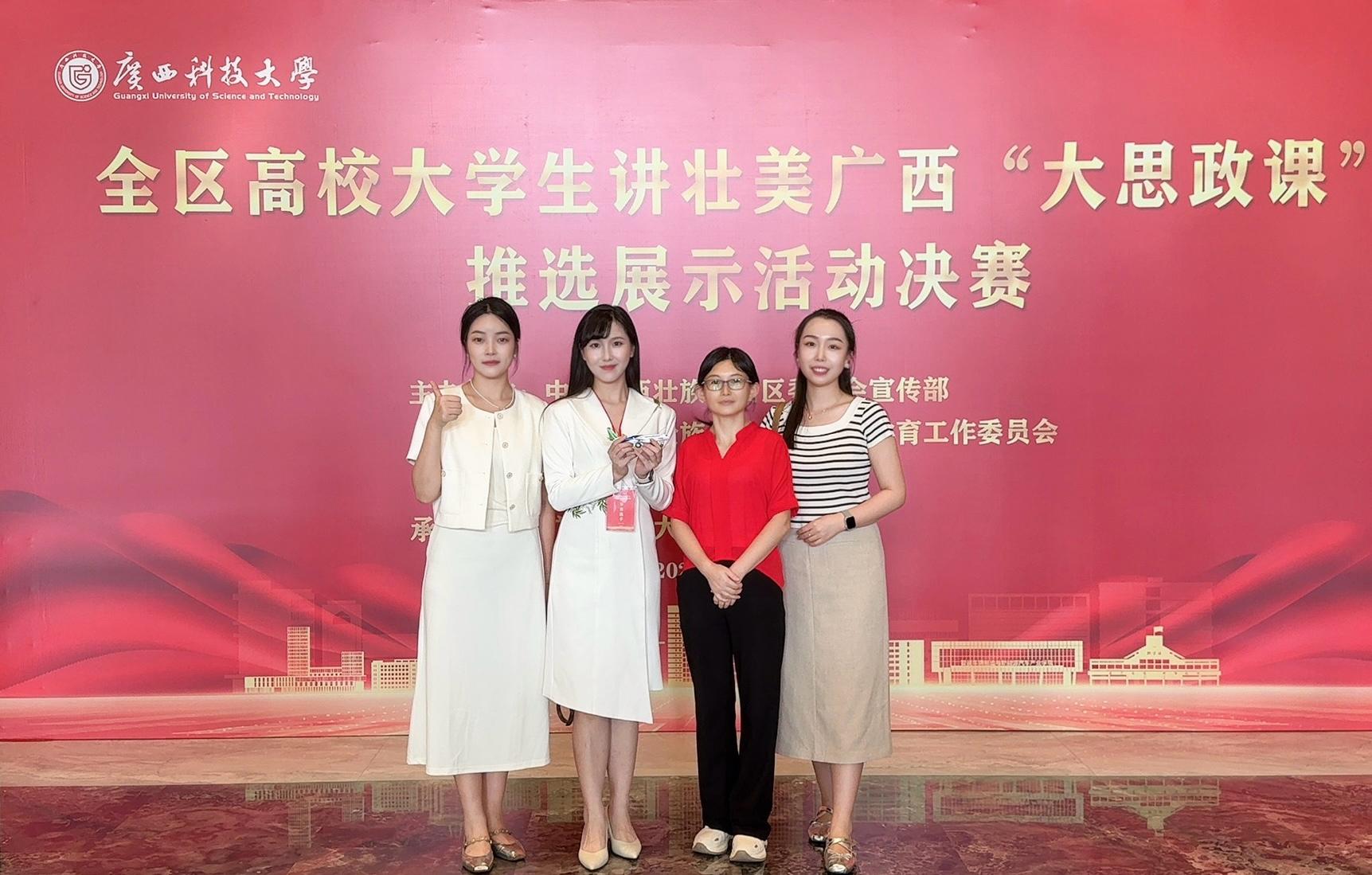 本次活动以“以青春之我建壮美广西”为主题,自2025年5月启动以来,全区各高校积极响应。我校马克思主义学院高度重视,组建了由甘韵涵同学担任主讲人,黄赵伟、常丽越、李晨皓、江俊华等同学为团队成员,董玉超、任海艳、路懿聪三位教师担任指导的参赛团队。团队紧扣主题,立足广西发展实践,深入实践教学基地开展调研,以“小切口讲大道理、身边人讲身边事”为原则,精心打磨教学设计与视频内容。在备赛过程中,指导教师全程指导,严格把关选题立意、内容架构及视频制作等关键环节;学生团队充分发挥专业优势,将专业知识与思政元素有机融合,最终创作出严格遵循技术规范的参赛作品。该作品以“行走的思政课”的创新形式,生动展现了广西在航空轮胎等领域的创新发展成就,充分彰显了我校“00后”学子深厚的家国情怀与时代担当。