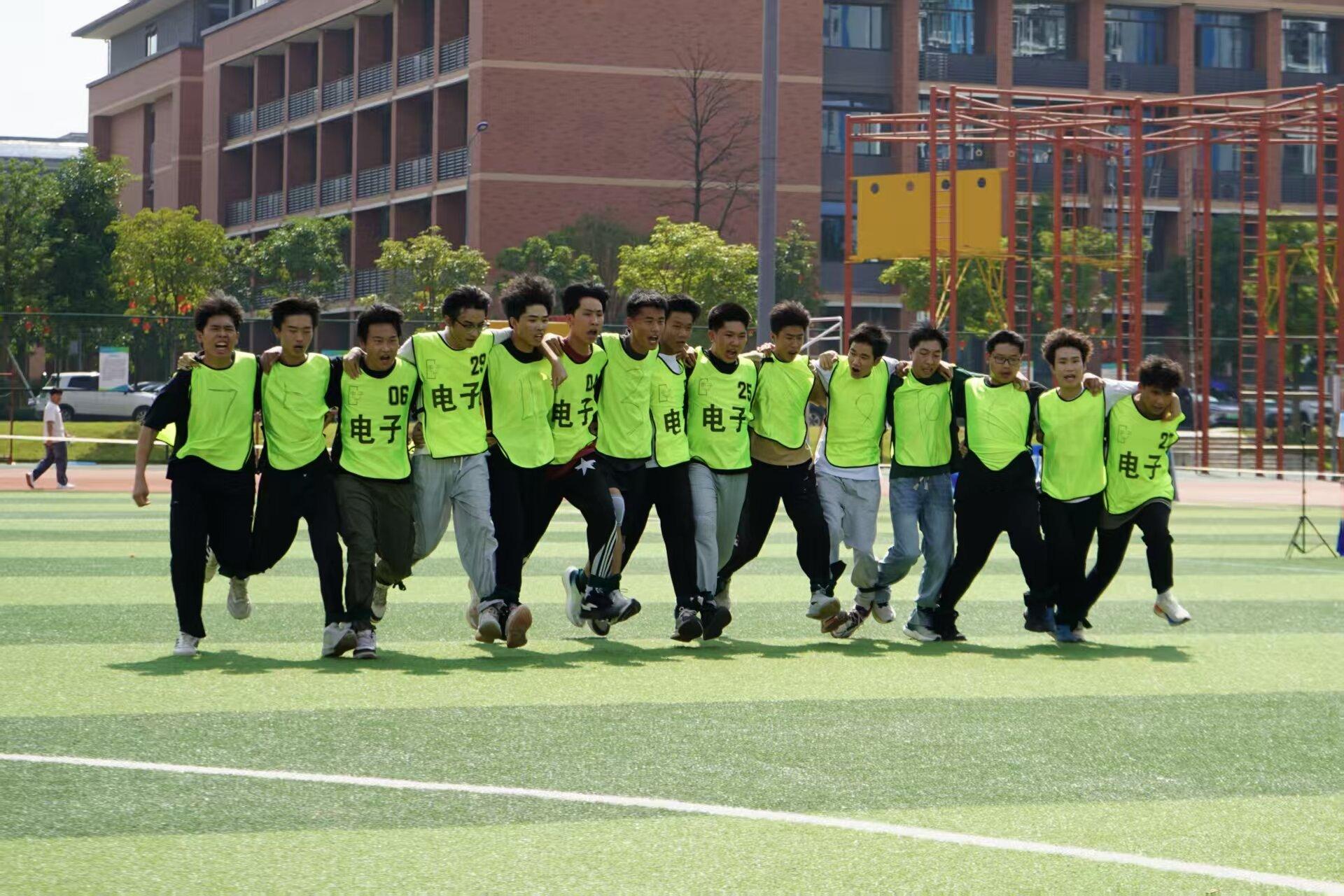作为承办单位,电子工程学院在赛前进行了周密的组织筹备工作,从场地布置、器材准备到后勤保障,均安排有序,为比赛的顺利开展提供了坚实支持。比赛过程中,随着裁判哨响,各支队伍步调一致、齐心向前,队员间配合默契、节奏统一,在口号声与助威声中奋力冲刺。现场掌声、欢呼声此起彼伏,团结、协作、拼搏的体育精神洋溢在整个赛场。