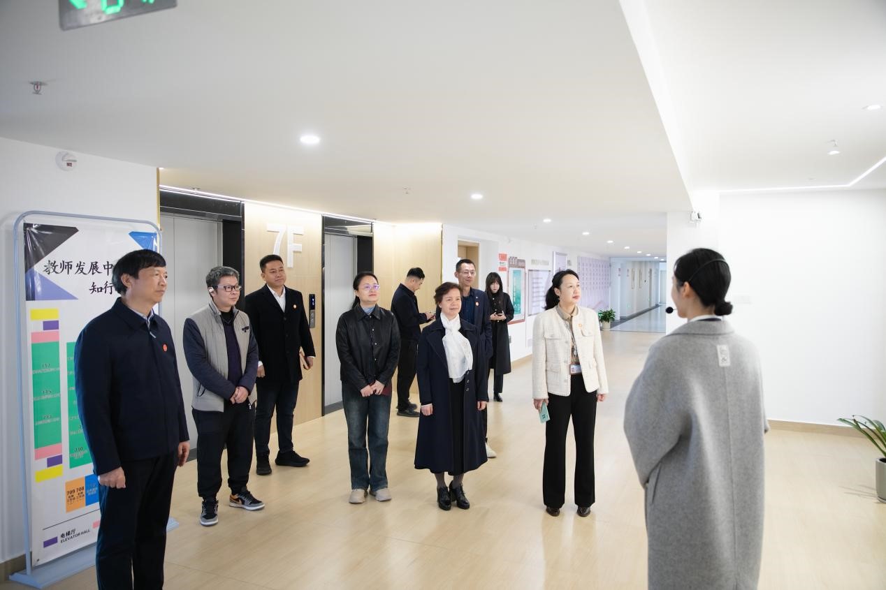 临桂区政协副主席欧翠兰、李春燕一行先后走访了知行楼露台、教师发展中心、图书馆、机器人中心、创新实践中心和科技馆等地。在知行楼露台俯瞰校园全景时,调研团队称赞校园规划科学,环境优美,体现了以生为本的办学理念。