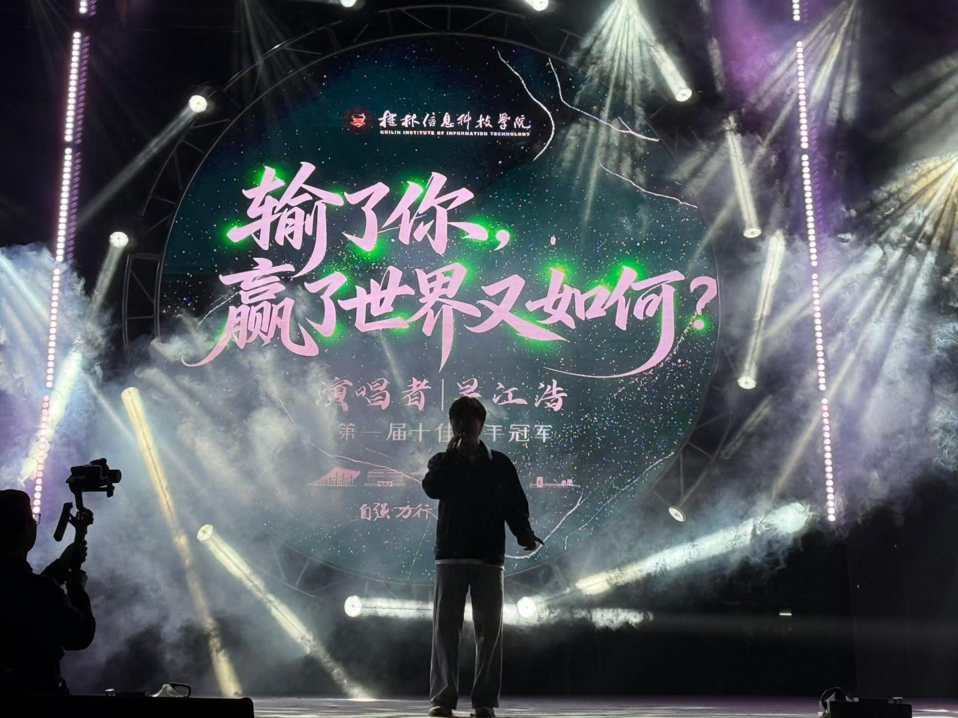 唱响青春序曲,共谱信科华章。12月7日晚,桂林信息科技学院第二届“信科好声音 十佳新势力”十佳歌手决赛在田径场燃情开唱。学校副校长罗捷,纪委书记兼校长助理周璇出席活动,相关职能部门、各二级学院团组织负责人及兄弟院校学生代表近3000人齐聚,共赴这场音乐盛宴。