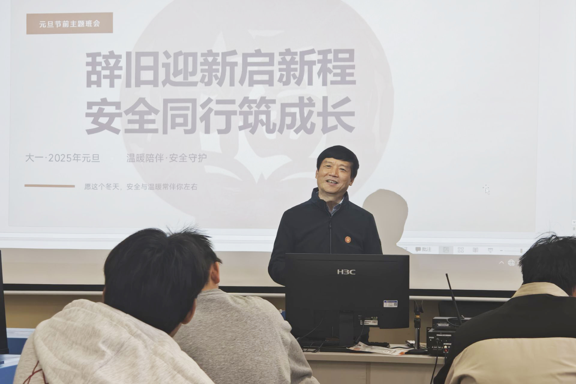班会回顾了2025年班级成长的温暖点滴,展示了大家在学业提升、文体活动等方面的丰硕成果。许老师强调,要安排好时间,期末努力考出水平。同时,元旦期间,要注意交通安全、消防安全和防诈骗安全等等。同学们踊跃发言,分享一年来的收获与感悟,畅谈新年愿景,现场气氛温馨而热烈。大家纷纷表示,要牢记嘱托,在新的一年里脚踏实地、奋勇前行,不负青春、不负学校的培养。
