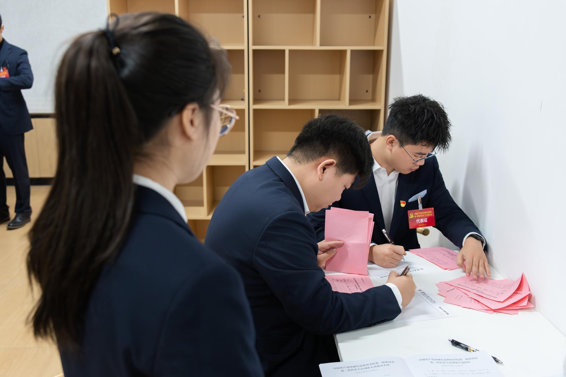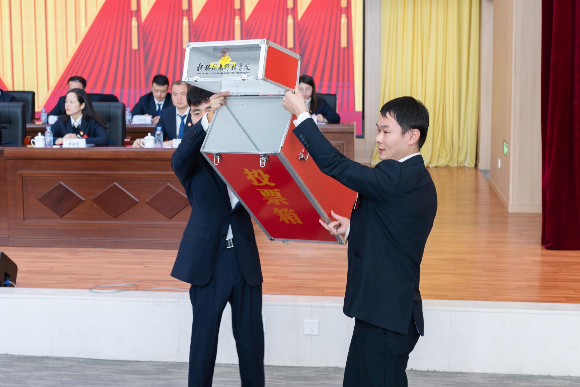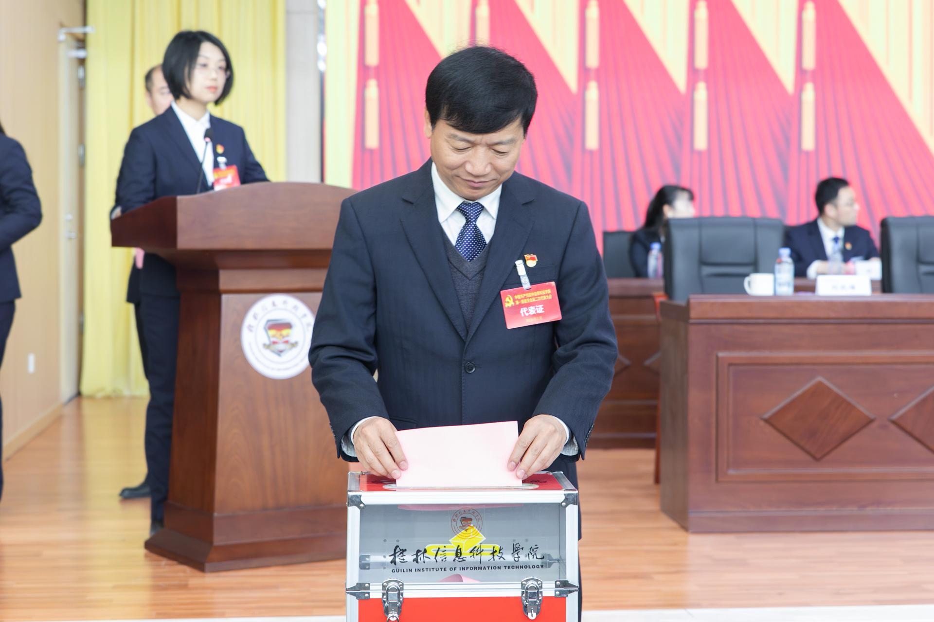 大会还审议通过了中国共产党桂林信息科技学院第一届党委委员补选预备候选人名单、大会选举办法(草案)、监票人员名单及计票人名单。全体党员代表以无记名投票方式对补选党委委员候选人进行差额选举。