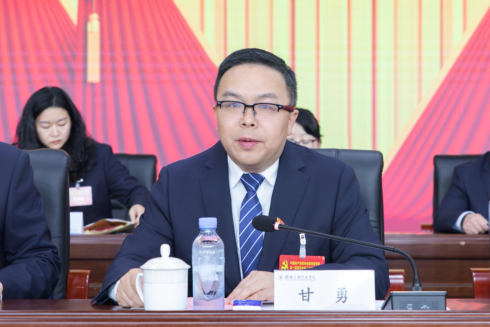 学校党委书记甘勇同志宣读补选委员当选名单。根据《中国共产党桂林信息科技学院第一届委员会第二次全体会议选举办法》和计票结果,罗捷、李桂华、刘跃峰、李亚倪4名同志当选为中共桂林信息科技学院委员会委员。