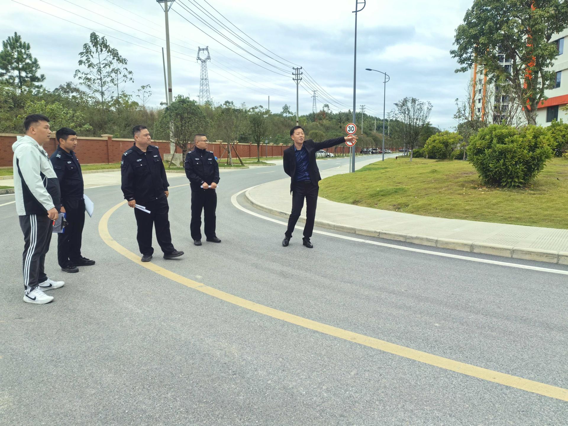 交警部门认真查看了学校交通规划、标识牌及限速带的规划方案,同时详细询问了学校周边道路状况、学生日常出行方式以及校内交通管理过程中面临的难点问题。在交流过程中,了解到学校在上下课高峰期,校内主要路段容易出现拥堵;而在节假日,校门口及涵洞处也常常出现交通不畅的情况,并给出了极具针对性的指导建议:一方面,通过在重点路段增设交通限速牌、减速带以及安全警示标识等措施,进一步明确安全标识,让师生能够清晰识别交通信息;另一方面,采取分时段管理的形式,加强对校内及周边区域的交通管理力度,引导师生安全出行,有效避免交通拥堵和安全事故的发生。