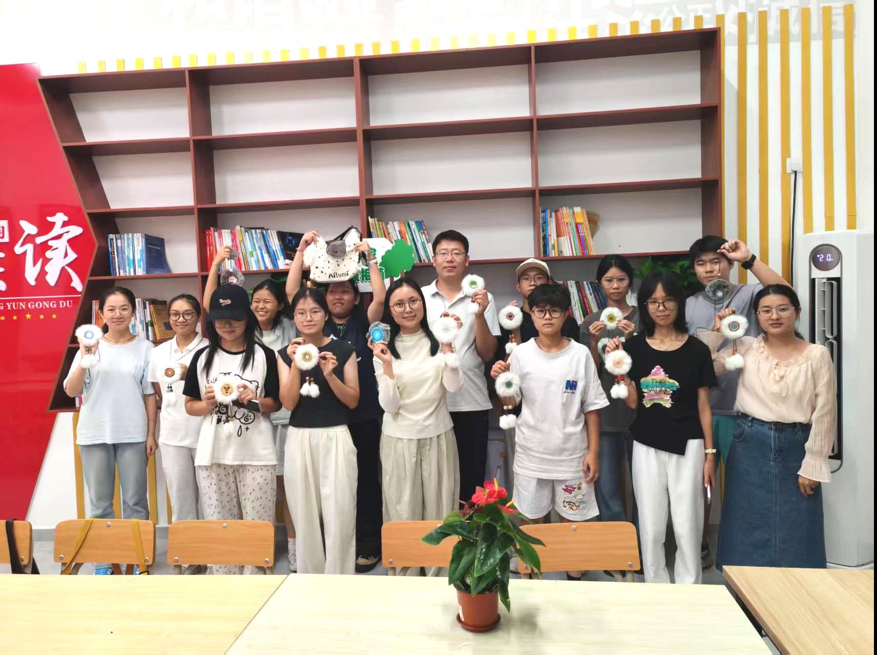 手工创作结束后,“太阳花知识问答” 互动游戏将氛围推向高潮,姚世杰围绕文化解读内容提问,同学们踊跃抢答,答对者获赠提前制作的太阳花挂件,在轻松互动中巩固民族文化认知。17:00 活动落幕,同学们手持挂件在签到墙前合影,彩珠闪光、兔毛轻晃,成就感溢于言表。姚世杰表示,本次活动以小物件承载大文化,未来学院将继续挖掘各民族特色手作,举办更多沉浸式文化活动。夕阳余晖下,同学们手中的太阳花挂件镀上金光,不仅是活动纪念,更化作传承民族文化、凝聚民族团结的种子,在每个人心中悄然生根绽放。