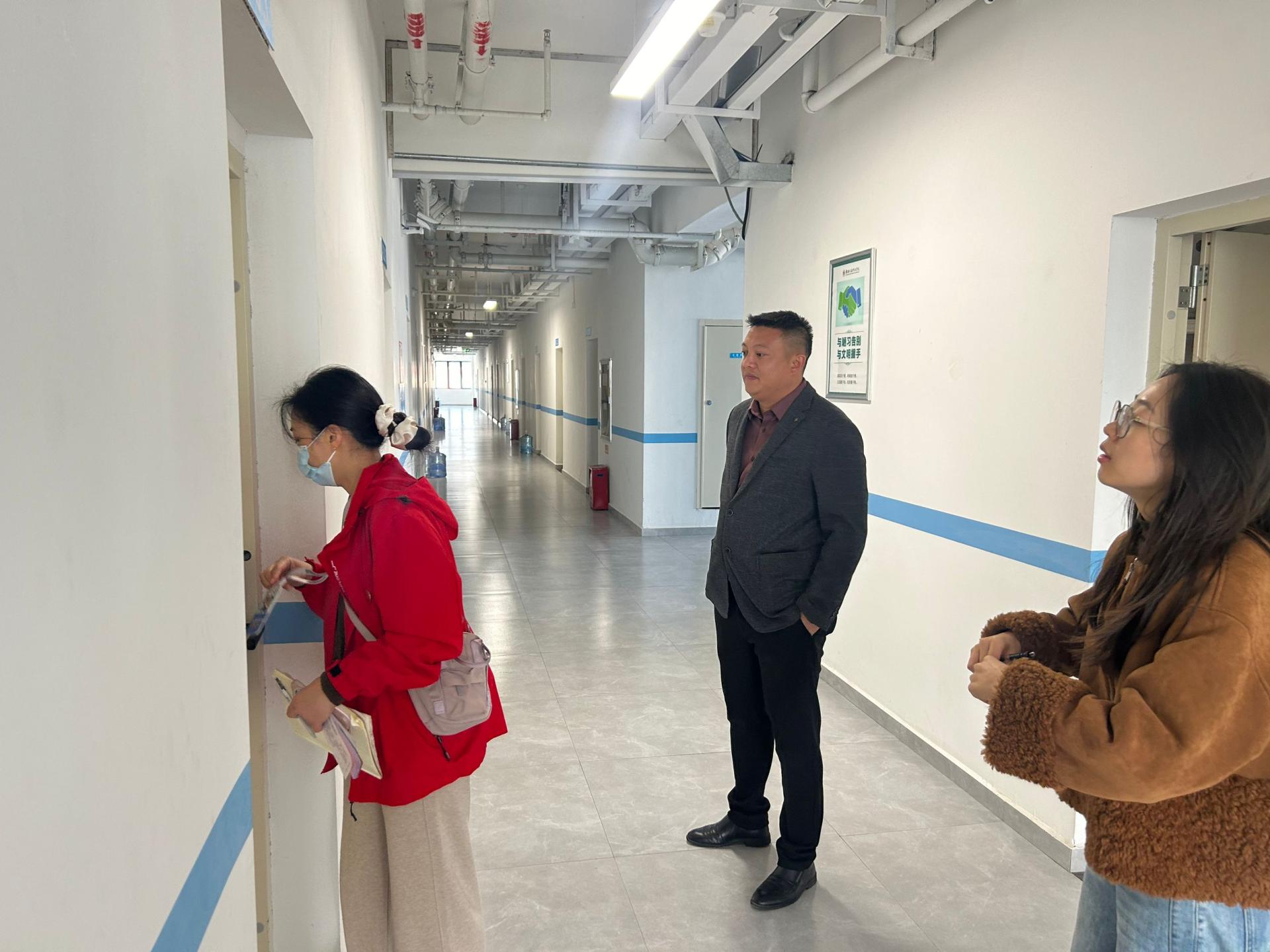 为扎实推进平安校园建设,营造安全文明的育人环境,切实保障学生生命财产安全与身心健康,12月8日,学生发展与服务中心组织开展覆盖全院学生宿舍的安全卫生专项排查工作。此次排查由学生发展与服务中心副主任蒋勇带队,机电工程学院党委副书记严继玲、团委书记胡姗及相关辅导员共同参与。