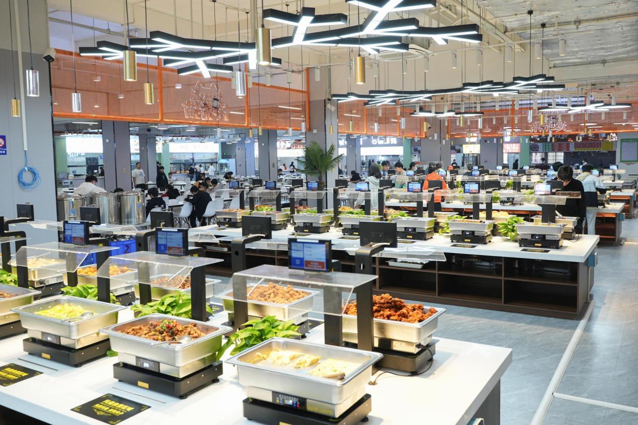 食堂大楼总建筑面积19729㎡,内设三层餐厅,涵盖110余个档口及自助餐,食材卫生安全,品类丰富,可提供定制化套餐。