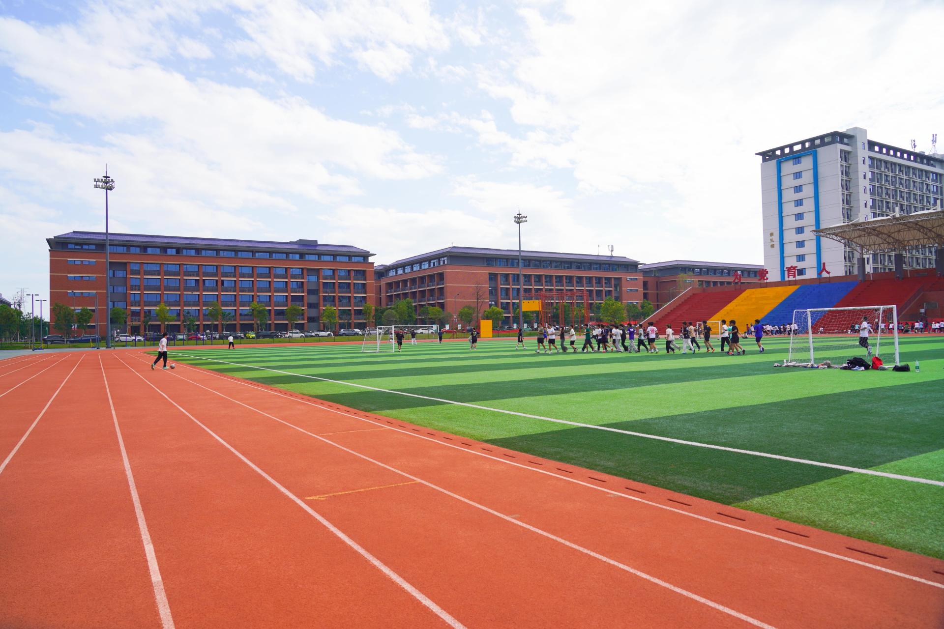 含400米标准田径场,大型足球场,户外4个篮球场、跳远沙池及观众看台