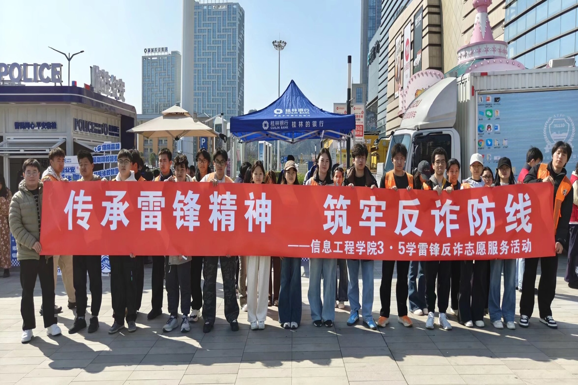 为迎接第63个“学雷锋纪念日”及春季开学季,3月5日,信息工程学院联合临桂公安局在吾悦广场警务站开展“3·5”学雷锋纪念日暨反诈开学第一课主题志愿服务活动,学院30名师生代表参加。活动中,民警与志愿者以雷锋精神为引领,聚焦高校反诈宣传重点,通过案例讲解、反诈知识普及、现场答疑等形式,向师生讲解电信网络诈骗常见类型、作案手法及防范要点,提醒学生警惕刷单返利、网络贷款、冒充客服等高发骗局,牢记“不轻信、不...