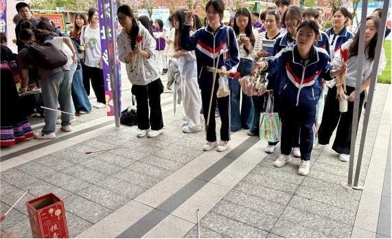 为铸牢中华民族共同体意识,推动广西三月三传统文化融入校园教育体系,4月14日,商学院于荟萃楼前举办“桂林山水颂 情系三月三”民俗文化活动。师生齐聚一堂,沉浸式体验民族文化魅力,共庆佳节。