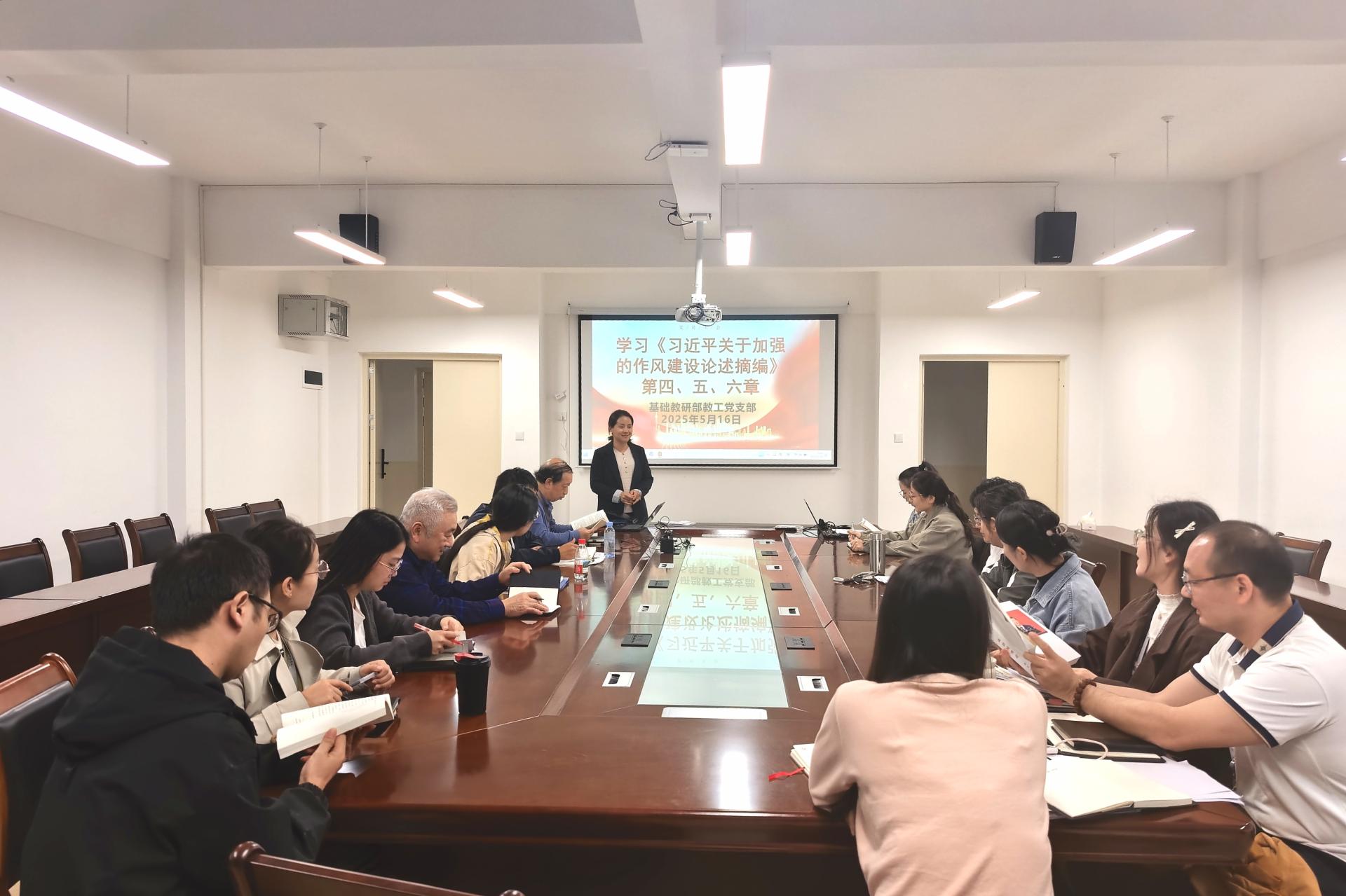 为深入学习贯彻习近平总书记关于加强党的作风建设的重要论述,进一步加强党员的党性修养和纪律意识,推动全面从严治党向基层延伸,5月6日下午,基础教研部教工党支部在汇通楼H504会议室召开专题学习会,集中学习《习近平关于加强党的作风建设论述摘编》第四、第五、第六章内容。会议由基础教研部教工党支部书记刘映伶主持,支部全体党员参加学习。