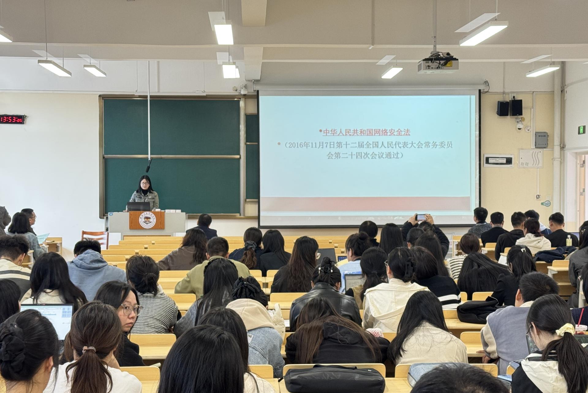 活动期间,学院党委组织委员系统解读了《中国共产党党员网络行为规定》与《中华人民共和国网络安全法》,通过剖析典型警示案例,明确网络行为底线与责任。各年级辅导员依托晚点名、主题班会等常态化载体,面向学生开展《中华人民共和国网络安全法》普及教育,重点围绕个人信息保护、网络诈骗防范等关键领域进行讲解,指导学生增强对不良信息的辨识抵御能力,掌握安全使用网络资源的技能。