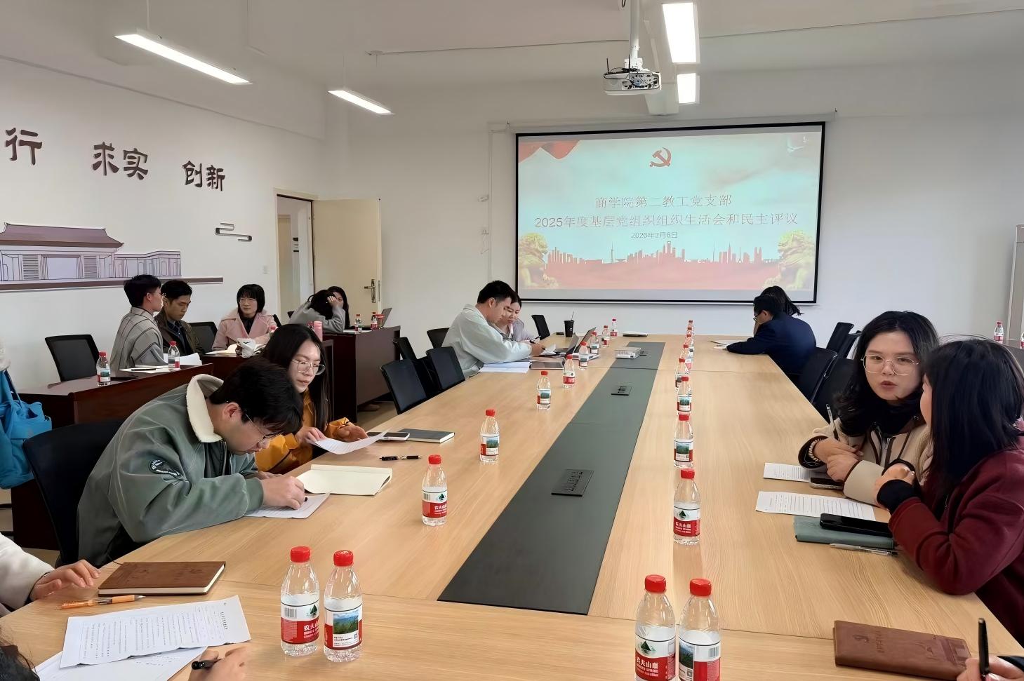 3月6日,商学院第二教工党支部在H621会议室召开2025年度基层党组织组织生活会,并同步开展民主评议党员工作。会议由党支部书记潘捷主持,支部全体党员参加。