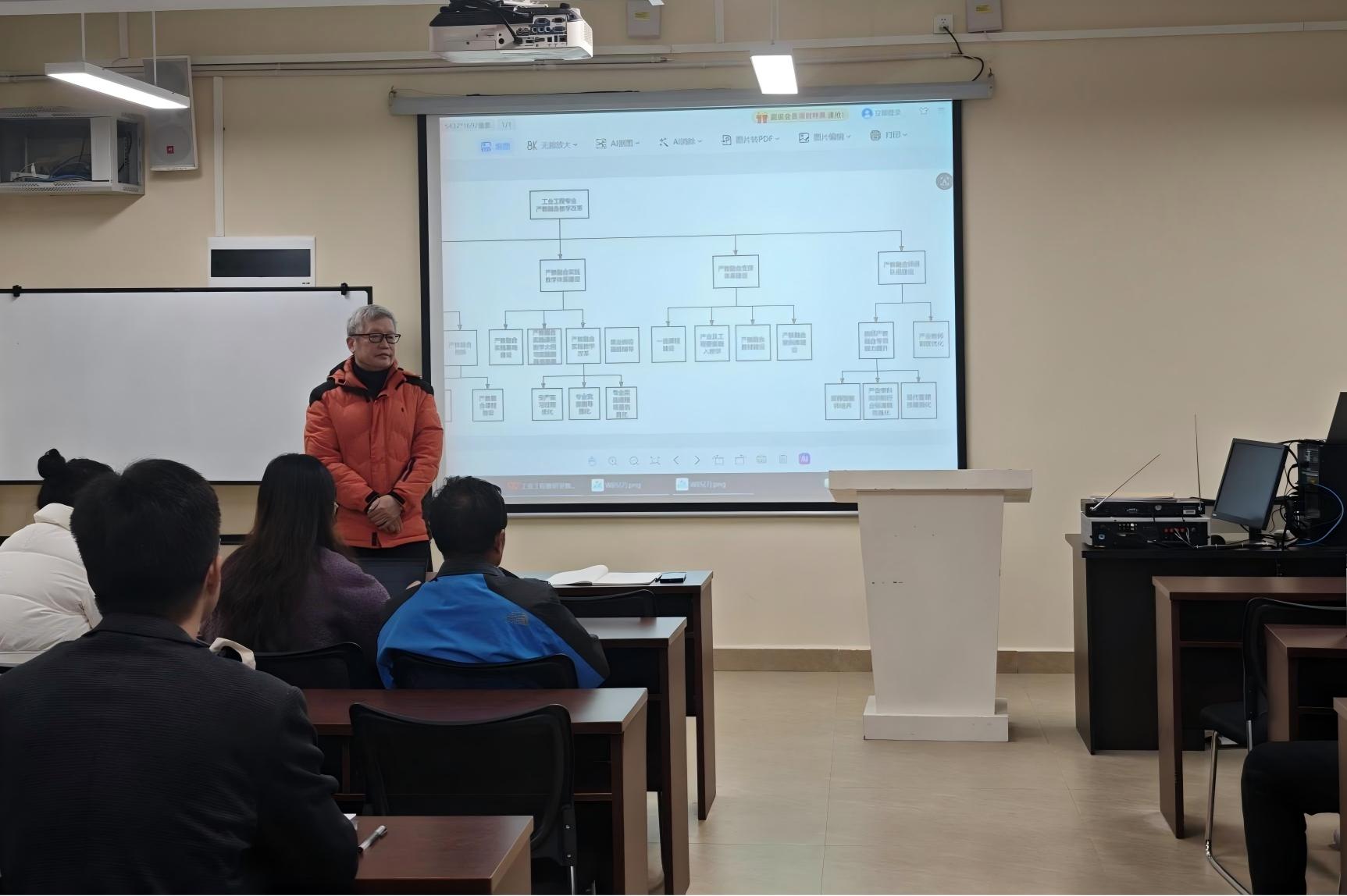 会上,戴欧阳主任分析了专业发展面临的形势,指出在智能制造转型背景下,推进改革是适应产业需求、提升人才培养质量的必然要求。成官文教授系统阐述了改革计划,围绕毕业论文质量提升、课程体系重构、实践教学强化等方面提出具体路径。他特别强调,教师需深入企业开展真实项目实践,推动教学内容与产业需求对接,提升“双师型”教学能力。与会人员围绕产教融合机制、案例教学建设等议题进行了深入研讨。