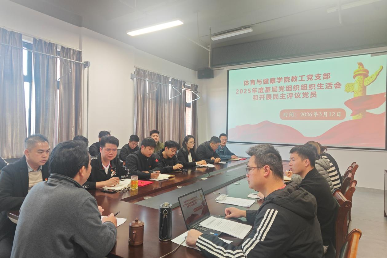 为深入学习贯彻习近平新时代中国特色社会主义思想,全面落实党的二十届四中全会精神,严格执行基层党组织组织生活会制度,切实提升党员党性修养与组织凝聚力,3月12日,体育与健康学院党总支、师生党支部分别开展2025年度组织生活会和民主评议党员。全体党员参会。