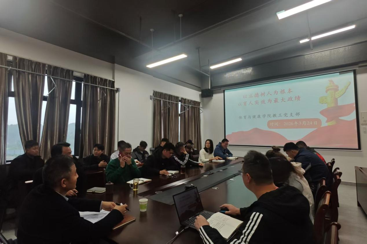 为深入学习贯彻2026年党和国家宗教工作相关法律法规政策,全面落实宗教事务治理法治化要求,筑牢校园意识形态安全防线,引导全体教工党员坚守立德树人根本任务,3月24日上午,体育与健康学院教工党支部在行健楼205会议室开展专题学习活动。校党委副书记李飞、学院院长周勇、学院党总支书记关永康以及全体教工党员参会,会议由党支部书记刘卓主持学习并领学。