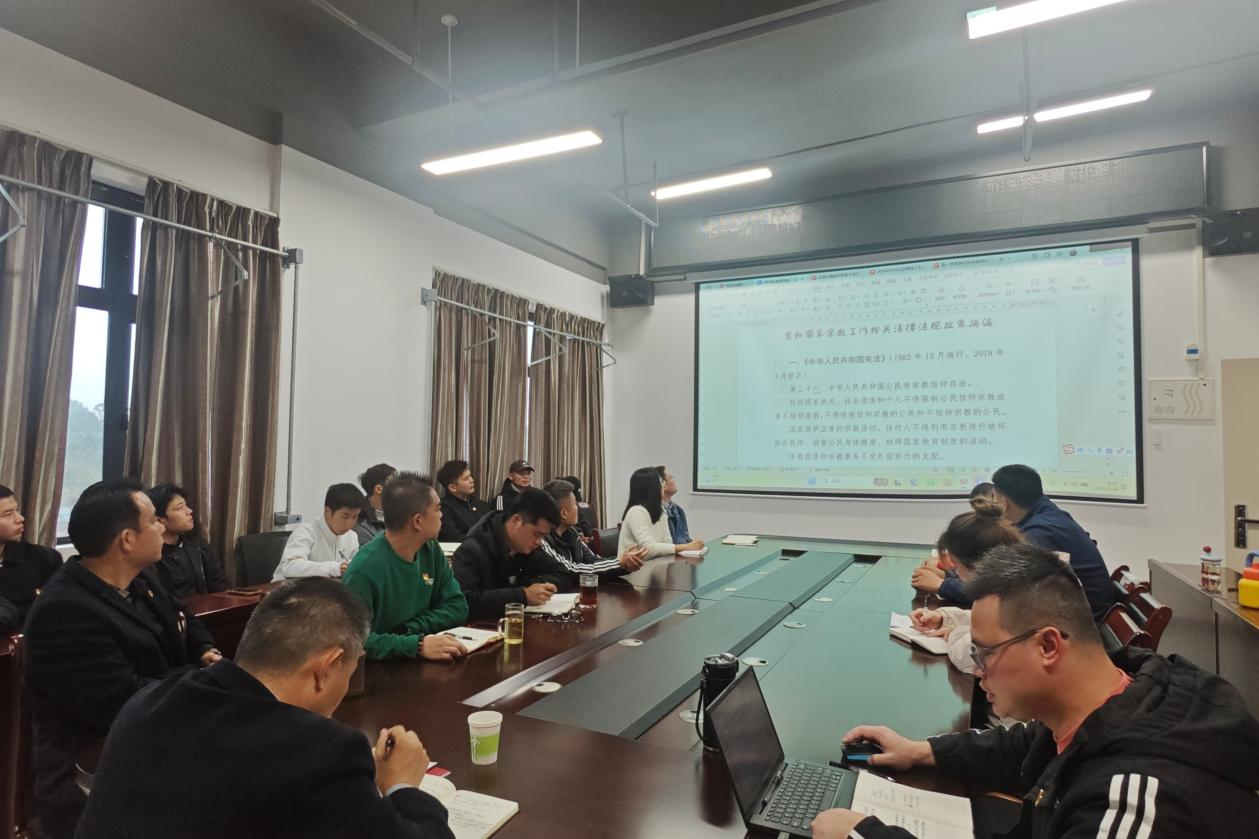 然后,紧扣2026年全国两会关于宗教工作的部署要求,聚焦《中华人民共和国民族团结进步促进法》《宗教事务条例》《宗教活动场所管理办法》等核心法规政策,详细阐释了宗教工作“保护合法、制止非法、抵御渗透、打击犯罪”的基本原则。