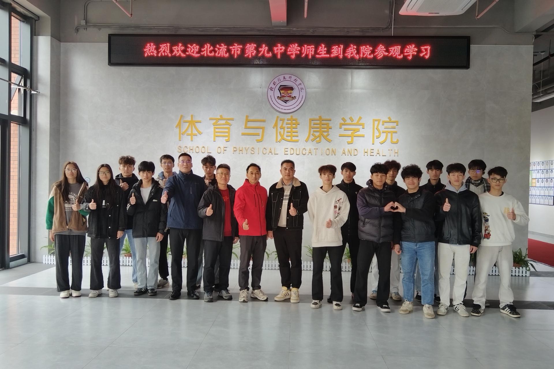 此次北流市第九中学师生参观学习活动,既是体育与健康学院落实体教融合、发挥高校育人作用的具体实践,也是加强大中小学协同育人、推动体育教育高质量发展的重要举措,进一步密切了高校与中学的联系,为后续双方深化合作、共促青少年健康成长奠定了坚实基础。