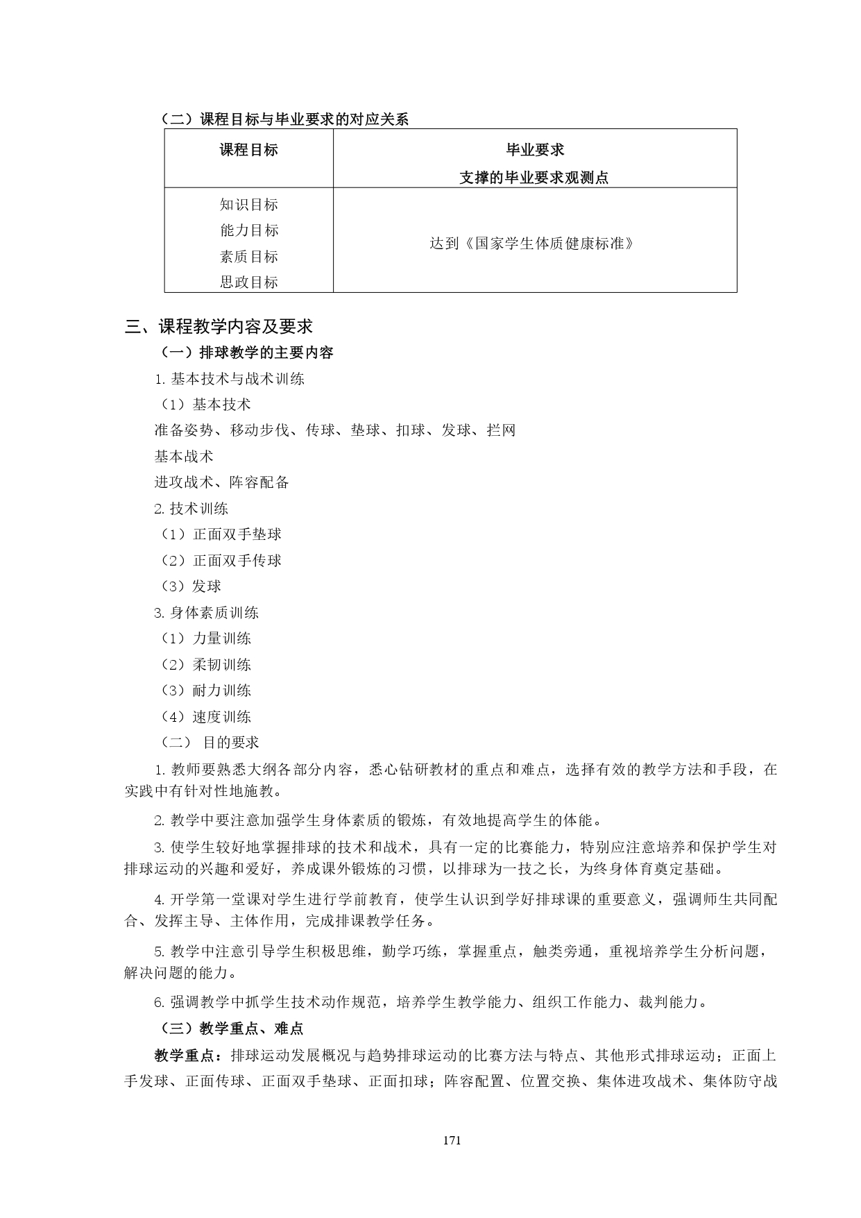 排球教学大纲